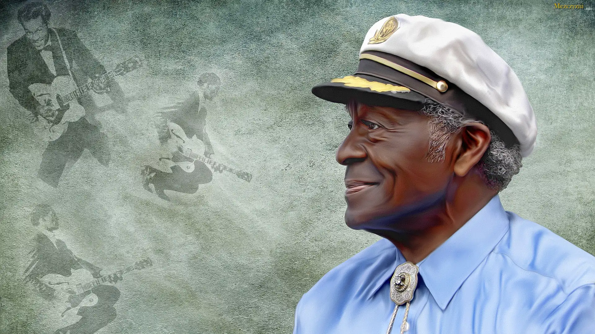 Piosenkarz, Chuck Berry, Czapka, Niebieska, Koszula, Grafika