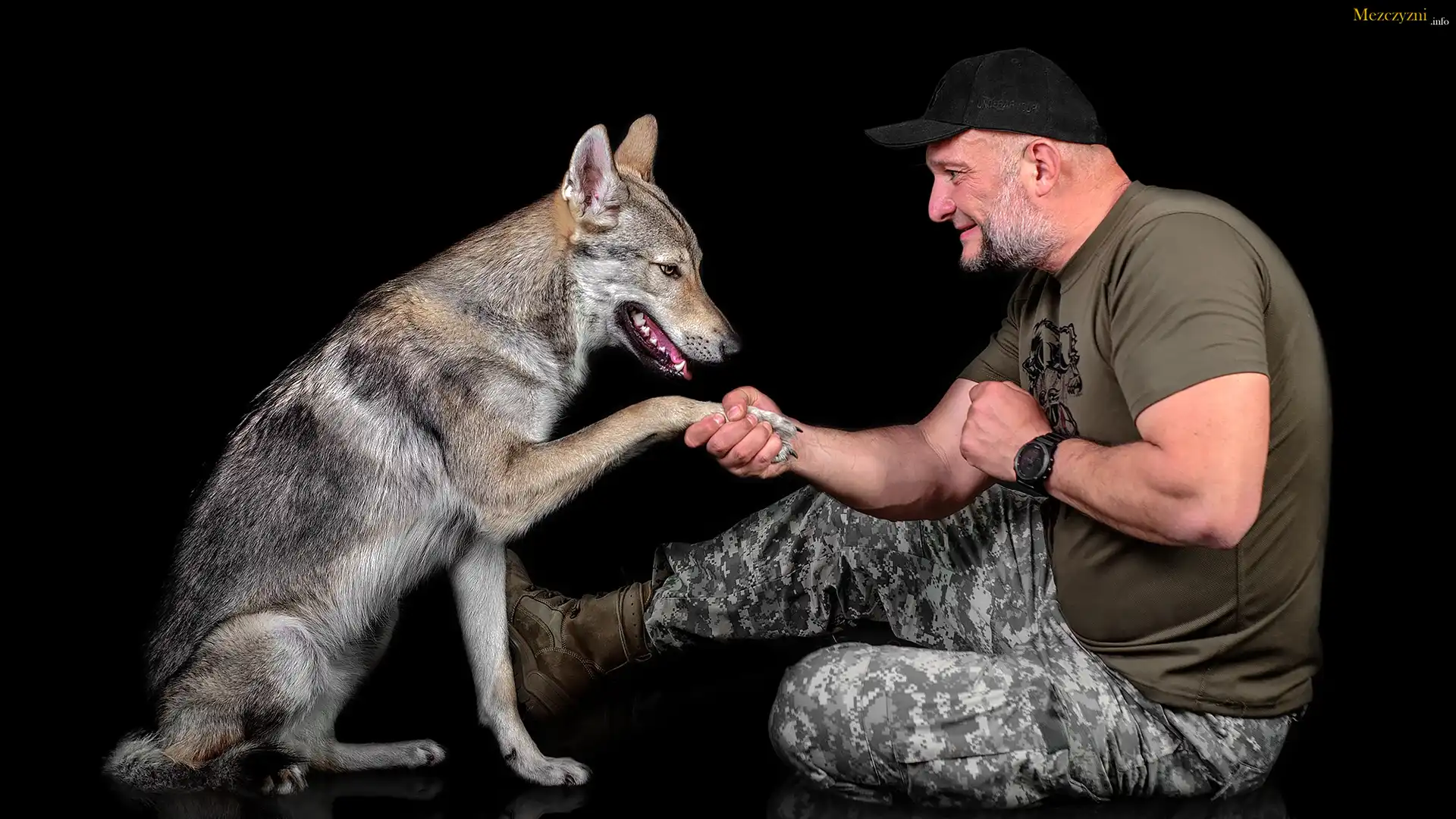Mężczyzna, Czapka, Broda, Zegarek, Pies, Wilczak czechosłowacki, Łapa