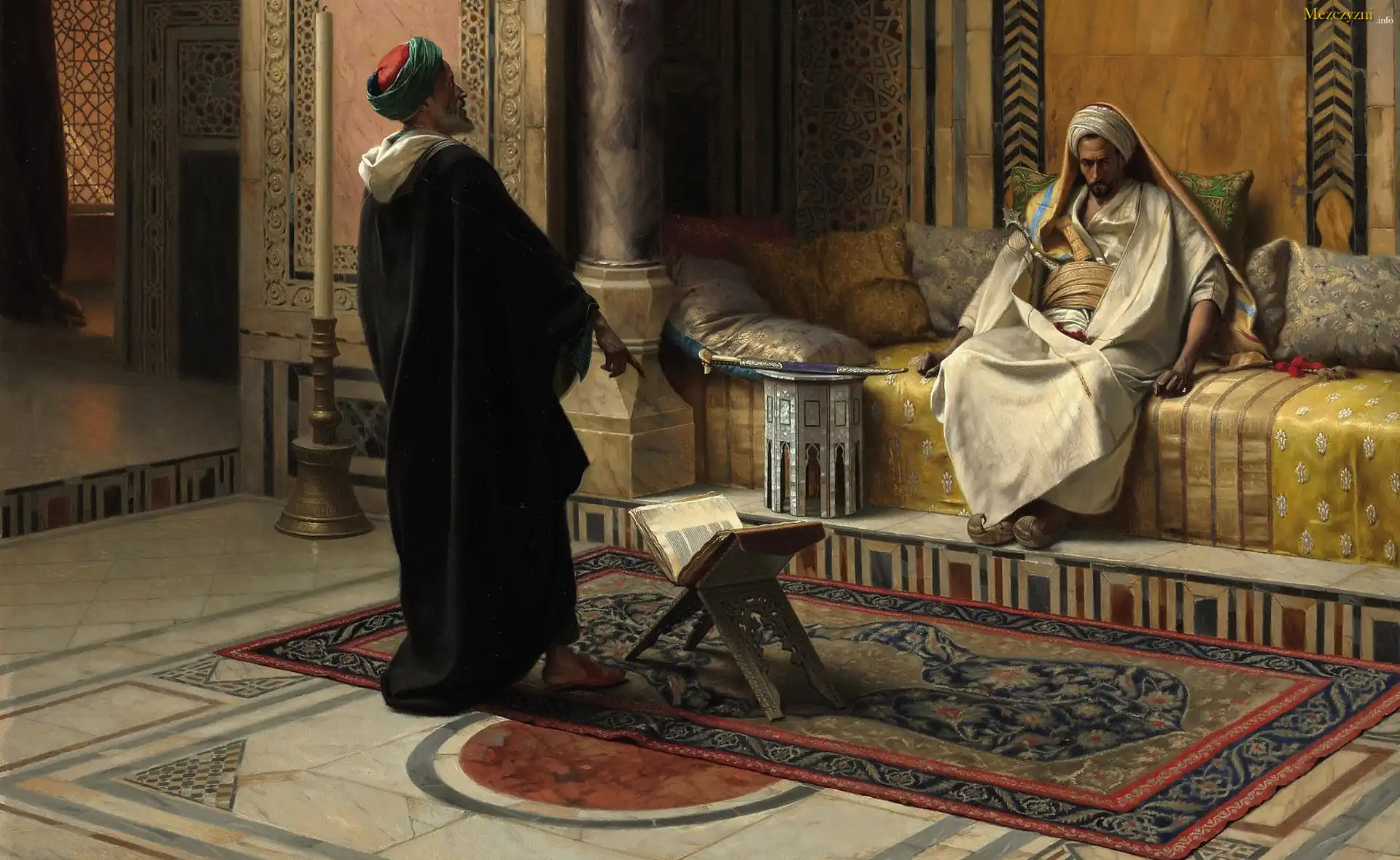 Mężczyźni, Komnata, Księga, Sofa, Otomana, Dywan, Malarstwo, Obraz, Ludwig Deutsch