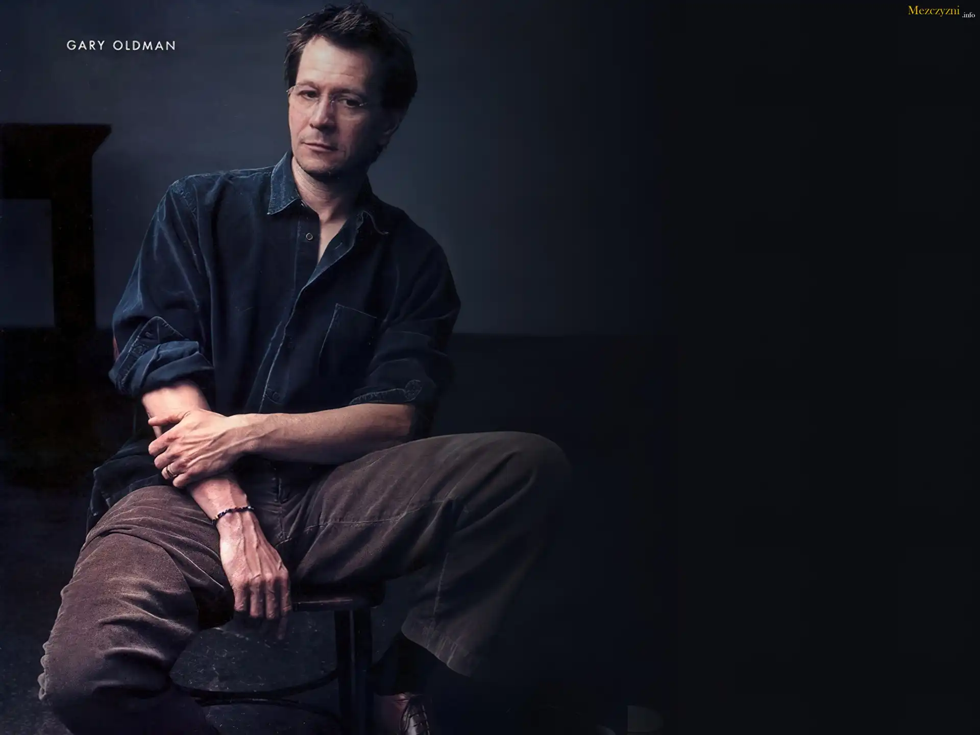 Gary Oldman,okulary, krzesło