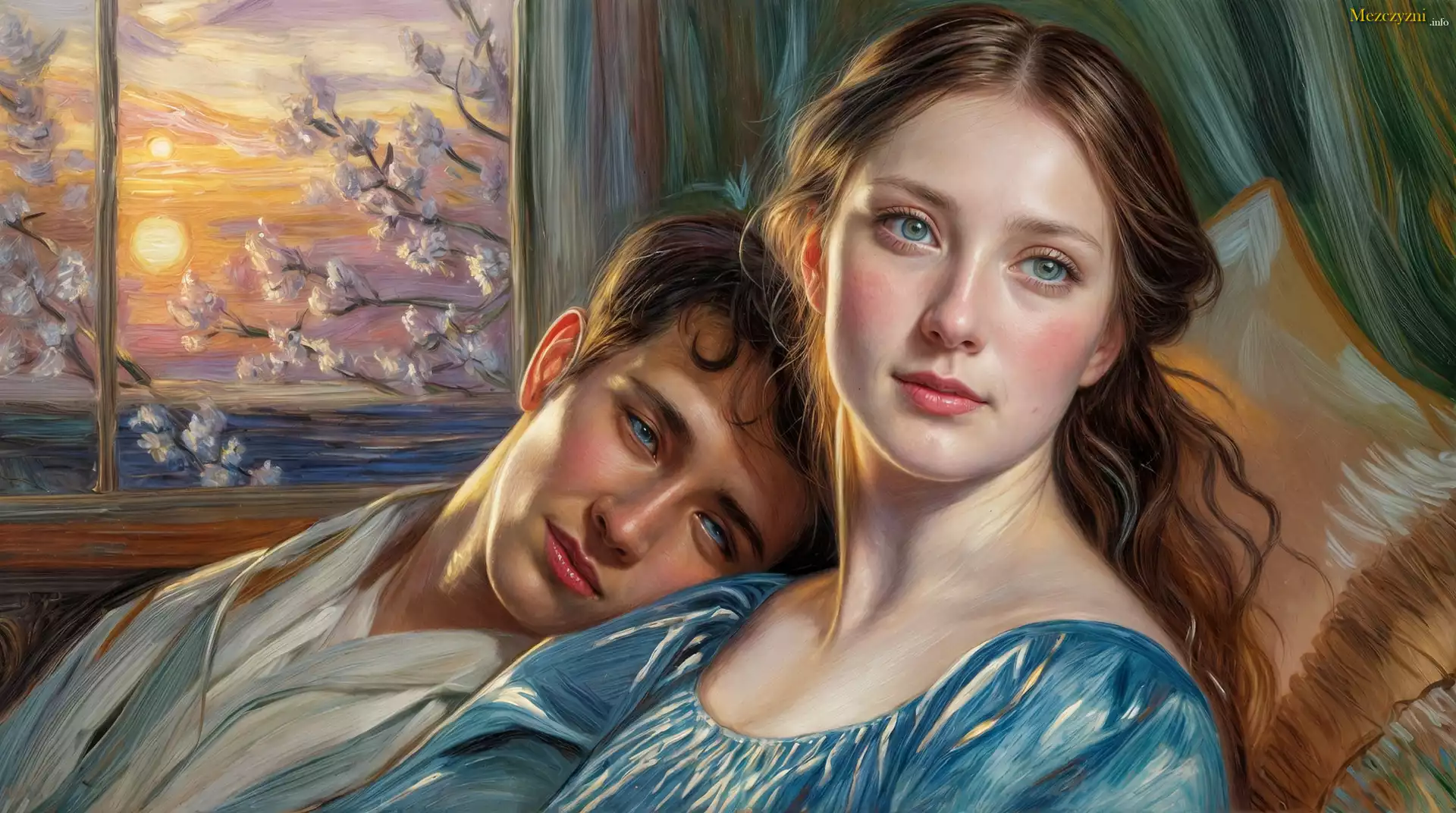 Mężczyzna, Kobieta, Okno, Drzewa, Grafika