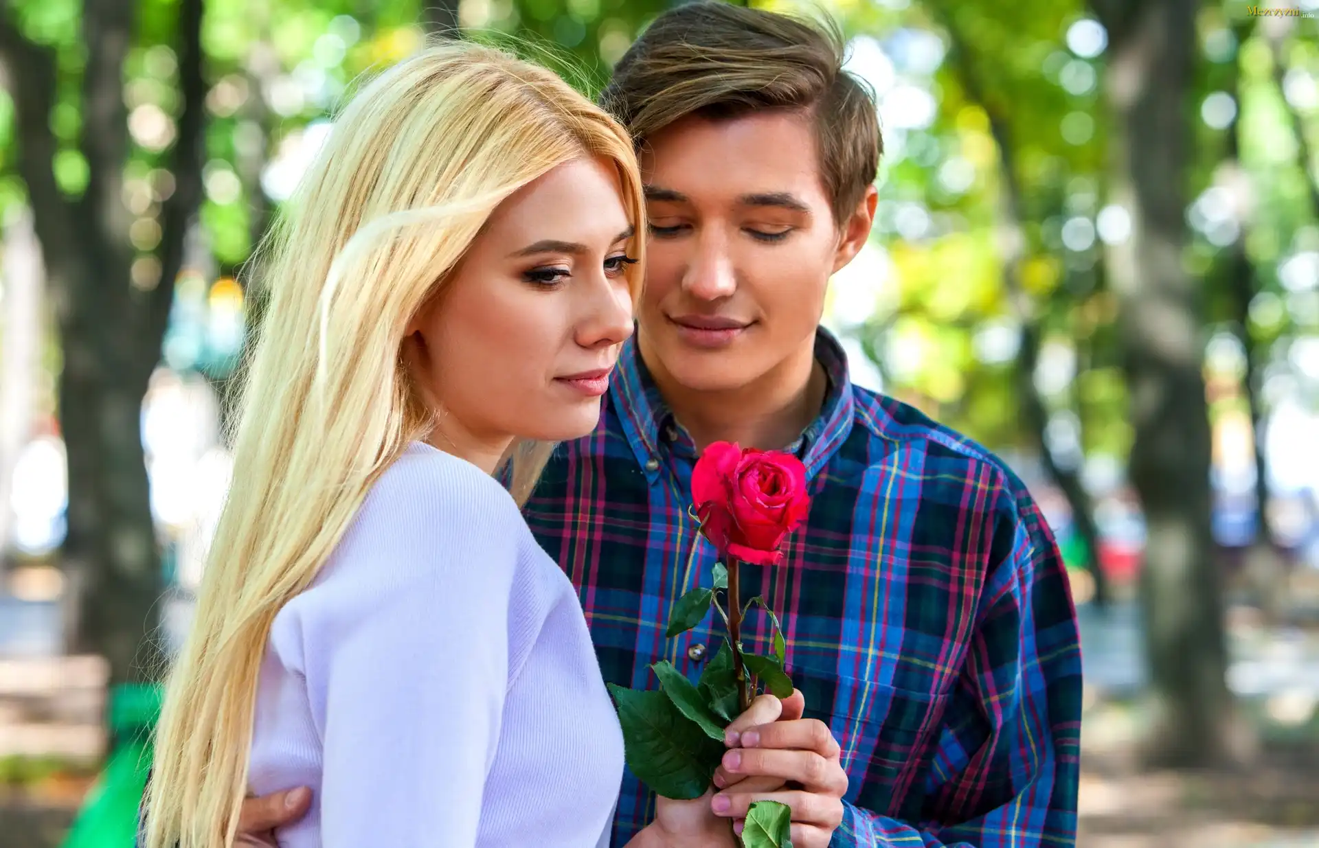 Kobieta, Mężczyzna, Para, Zakochani, Róża