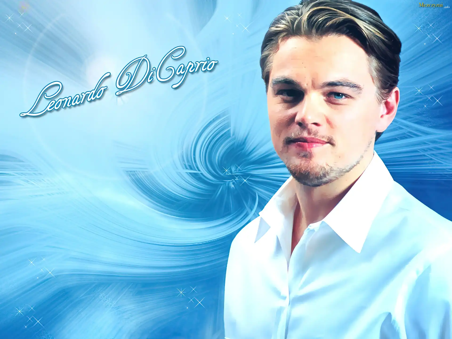 Leonardo DiCaprio,niebieskie oczy, biała koszula