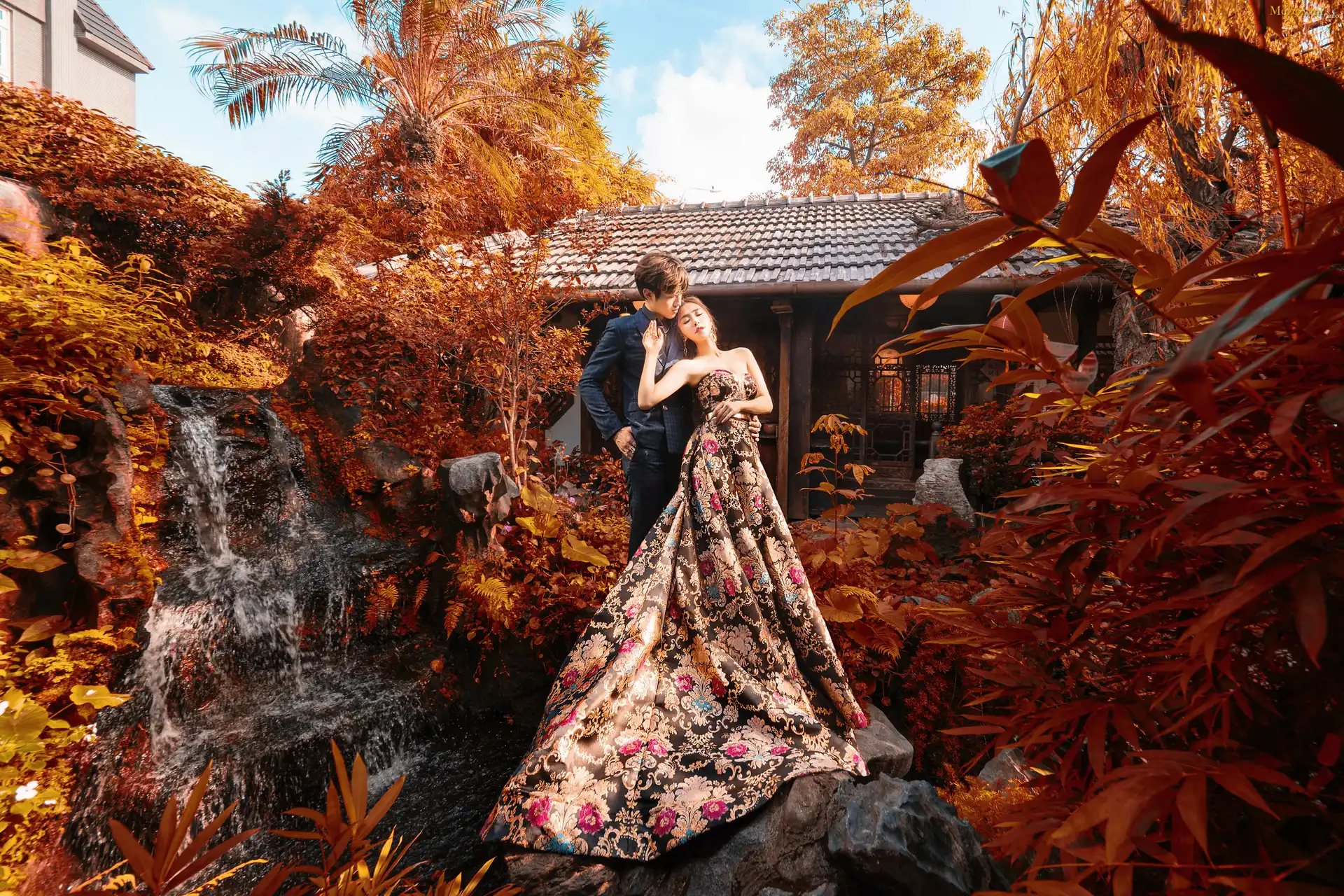 Kobieta, Mężczyzna, Para, Zakochani, Miłość, Ogród, Jesień, Dom