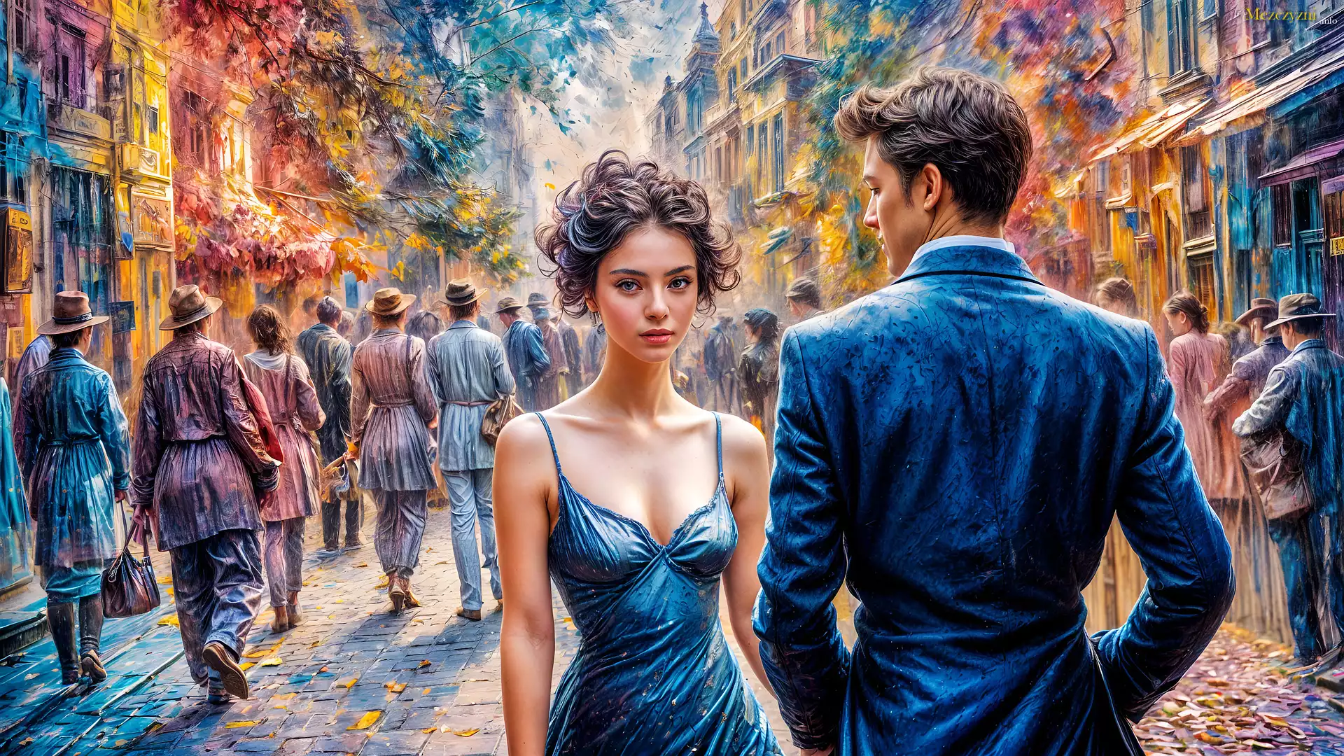 Kobieta, Mężczyzna, Ulica, Miasto, Grafika