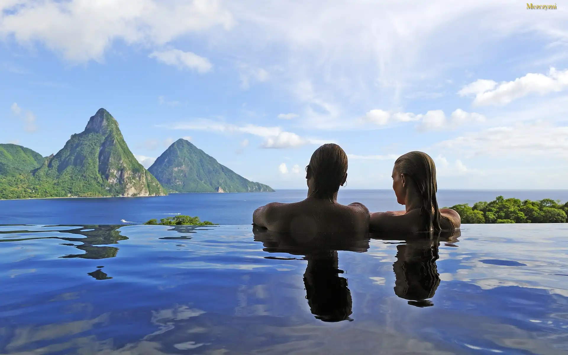 Morze, Góry, Niebo, Kobieta, Mężczyzna