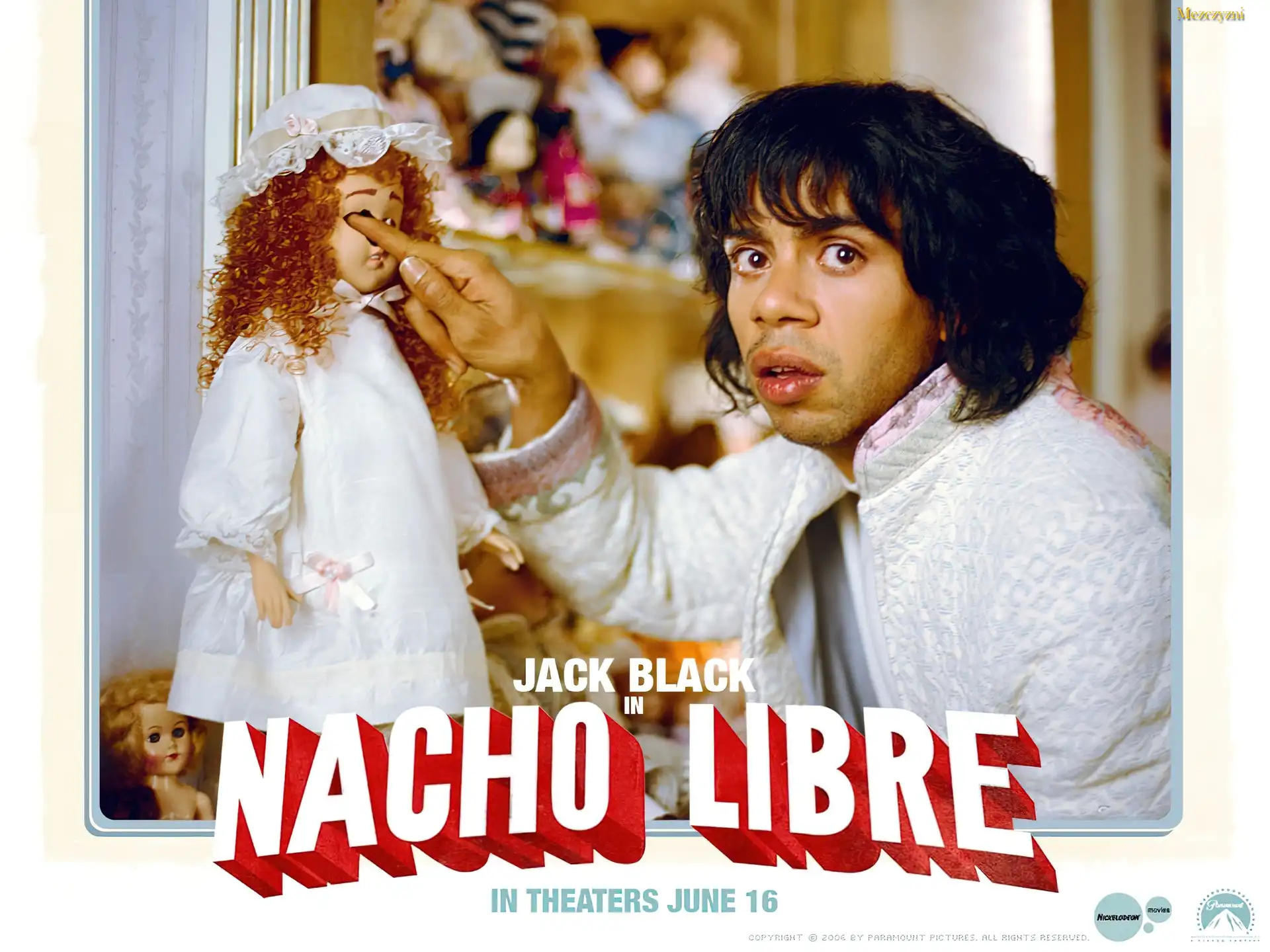 Nacho Libre, Hector Jimenez, lalka, napis Nacho Libre, Hector Jimenez, kukurydza, leżak, basen scena, Nacho Libre, Hector Jimenez, Jack Black, majtki