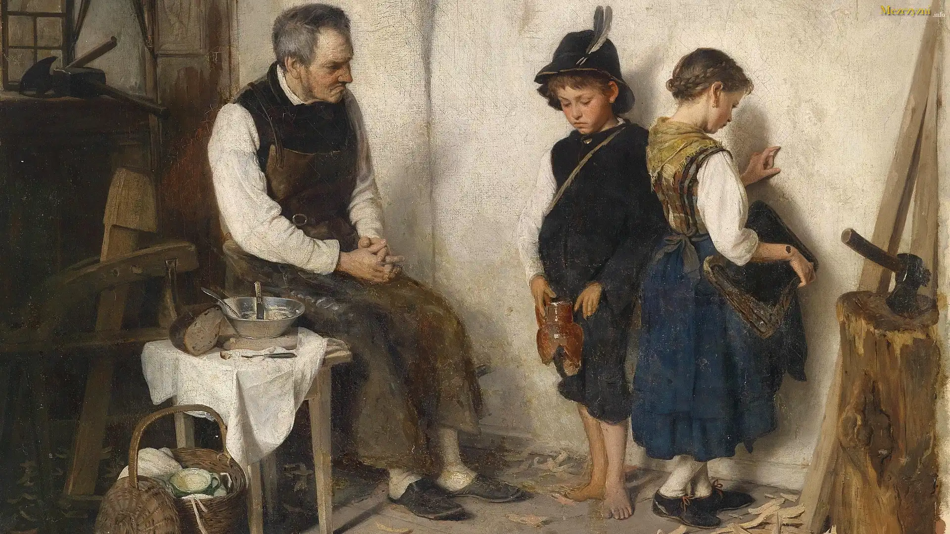 Malarstwo, Obraz, Gustav Igler, Mężczyzna, Dzieci, Izba