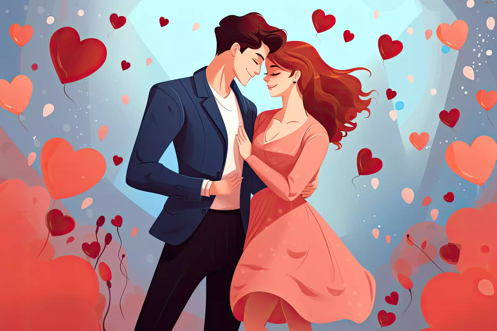 Romantyczny, Mężczyzna, Kobieta, Serca, Balony, Sukienka, Garnitur, Para