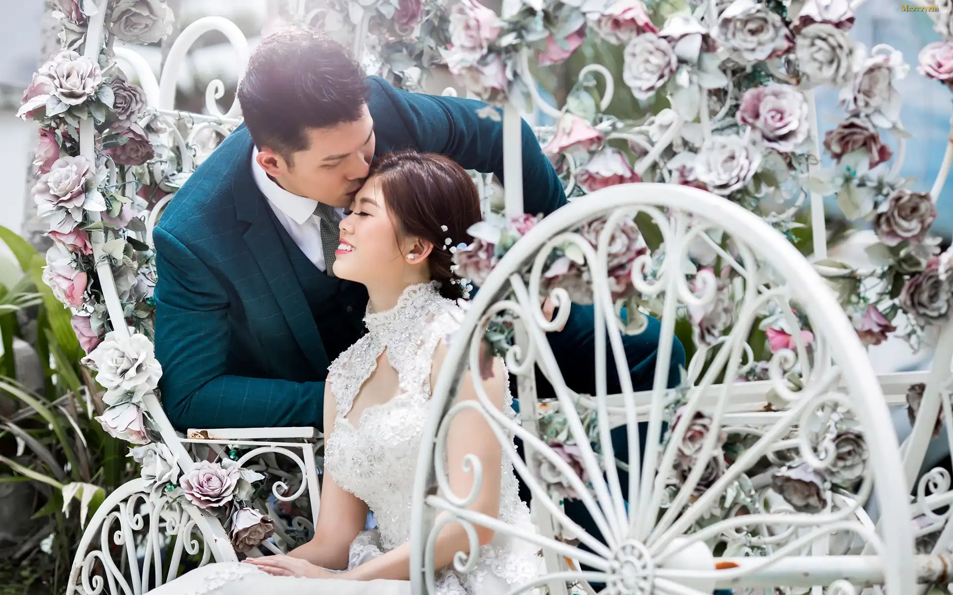 Para młoda, Kobieta, Mężczyzna, Ślub, Kwiaty