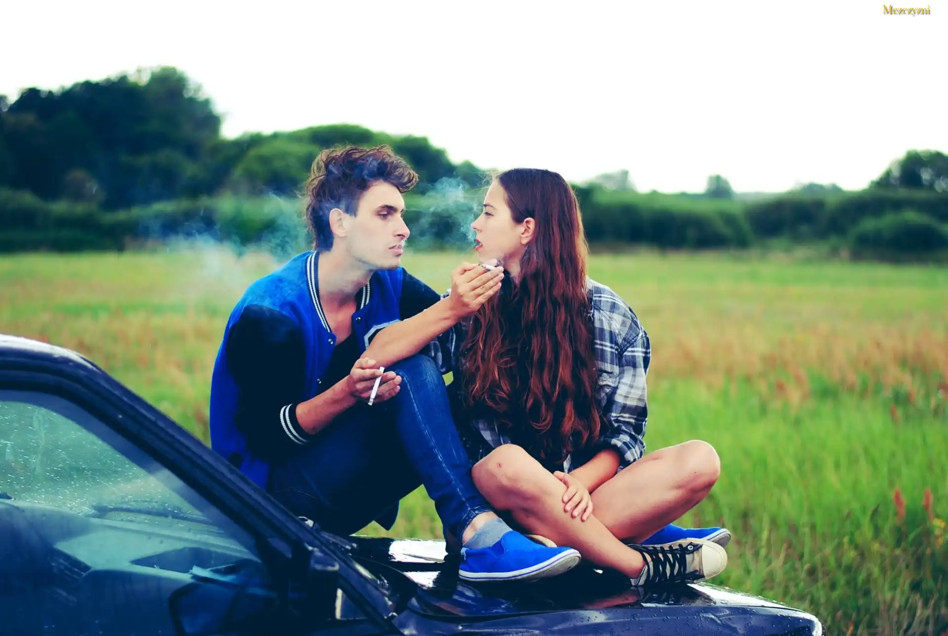 Para, Mężczyzna, Kobieta, Papierosy, Samochód