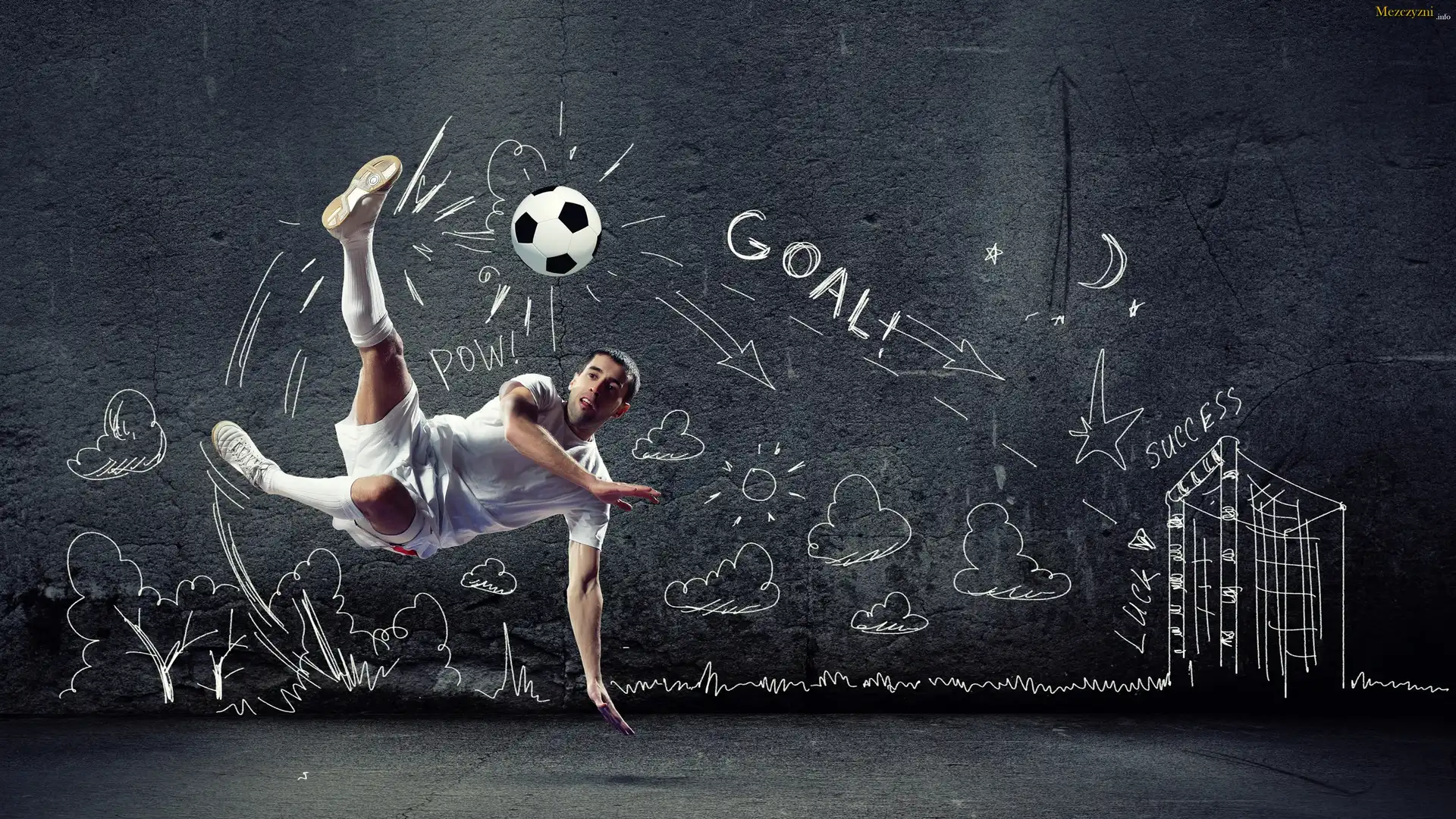 Piłka nożna, Piłkarz, Piłka, Ściana, Rysunek