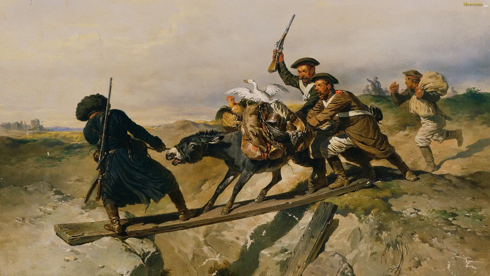 Malarstwo, Obraz, Josef Anton Rhinestone Gschwandtner, Żołnierze, Zwierzęta, Ucieczka, Wojna