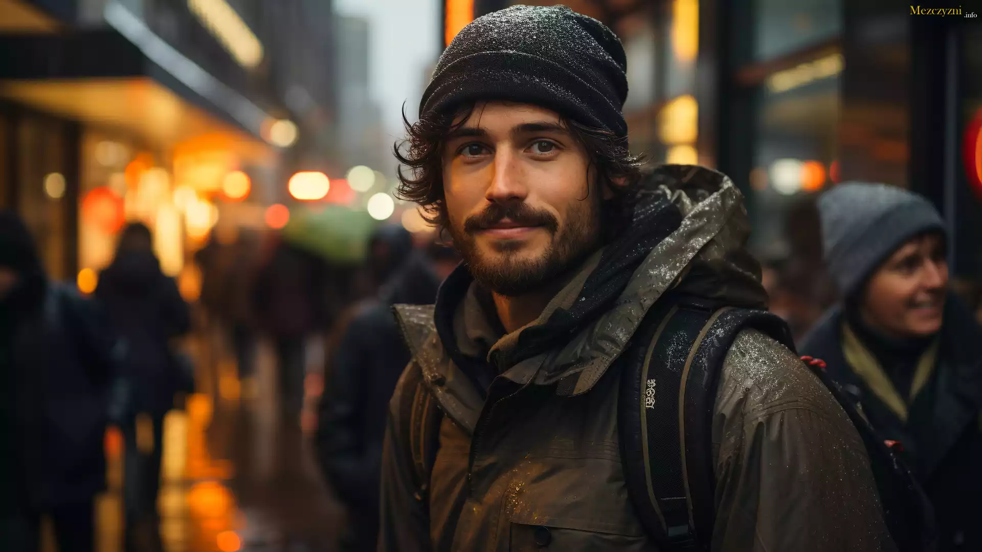 Mężczyzna, Zarost, Czapka, Kurtka, Spojrzenie