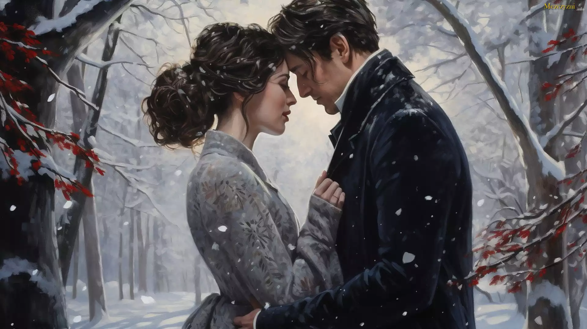 Miłość, Para, Zakochani, Zima, Park, Kobieta, Mężczyzna
