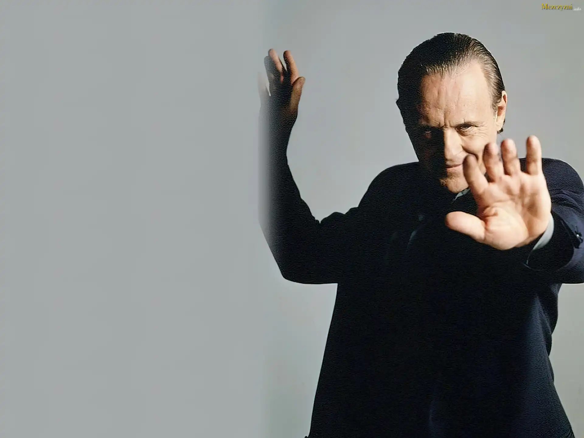 Anthony Hopkins,czarny, strój, ręce