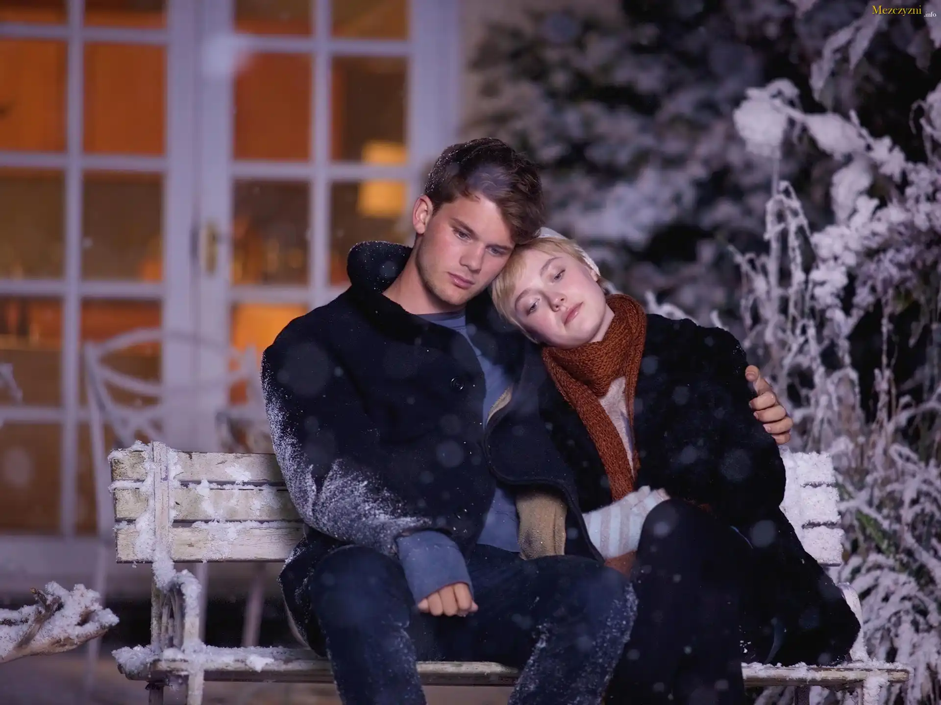 Film, Dakota Fanning, Aktor, Jeremy Irvine, Ławka, Śnieg