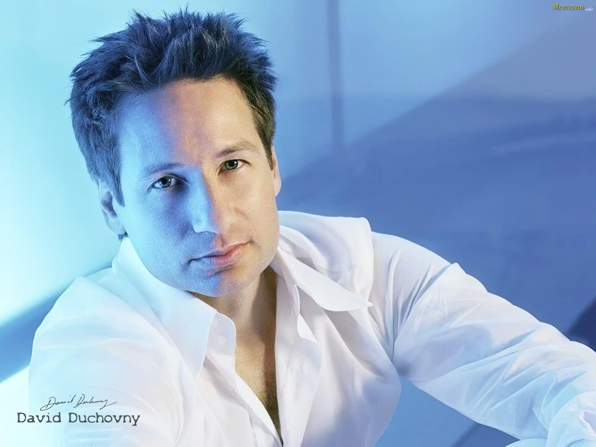 David Duchovny,biała koszula, ciemne włosy