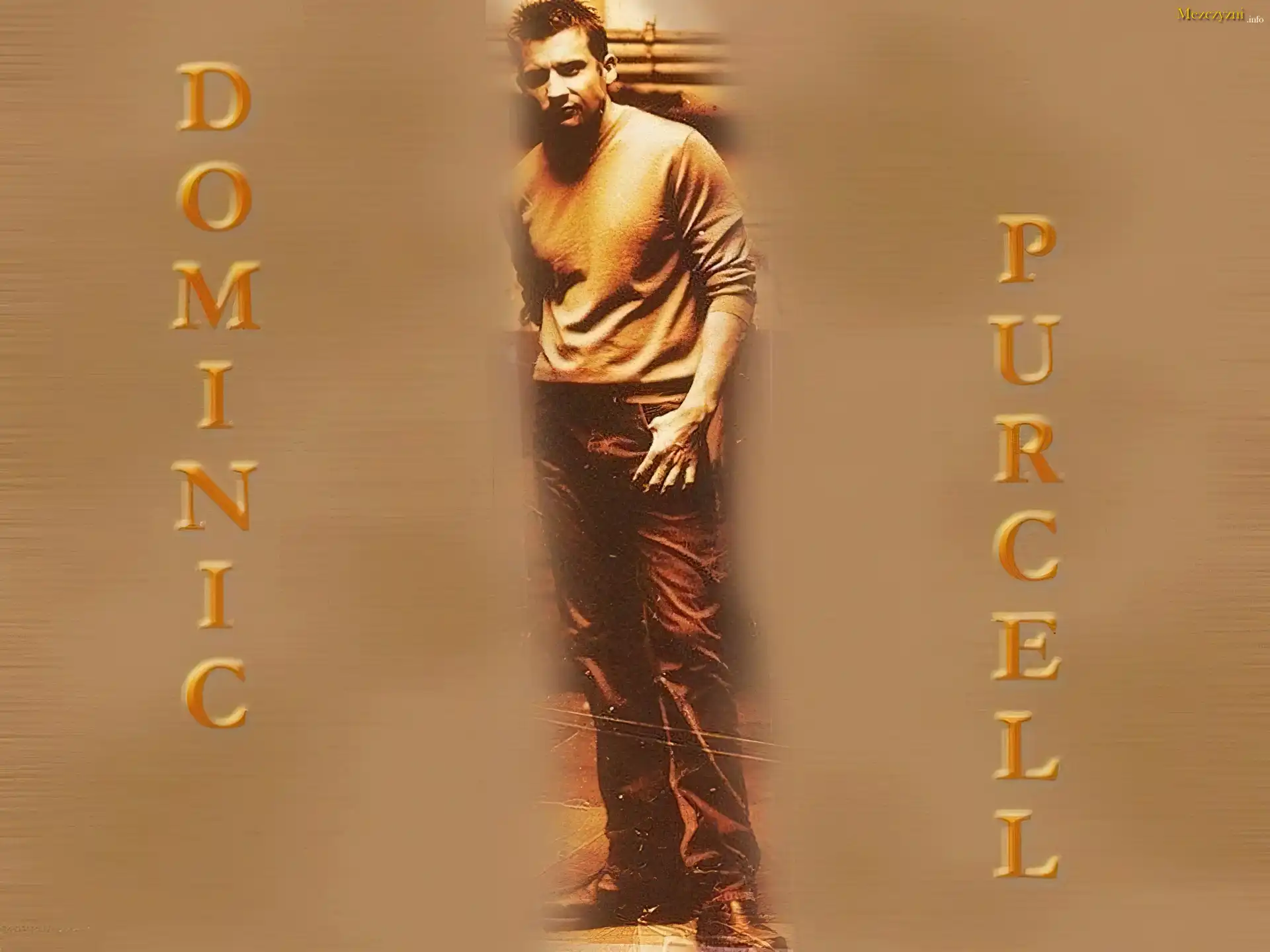 Dominic Purcell,beżowa bluzka, ciemne spodnie