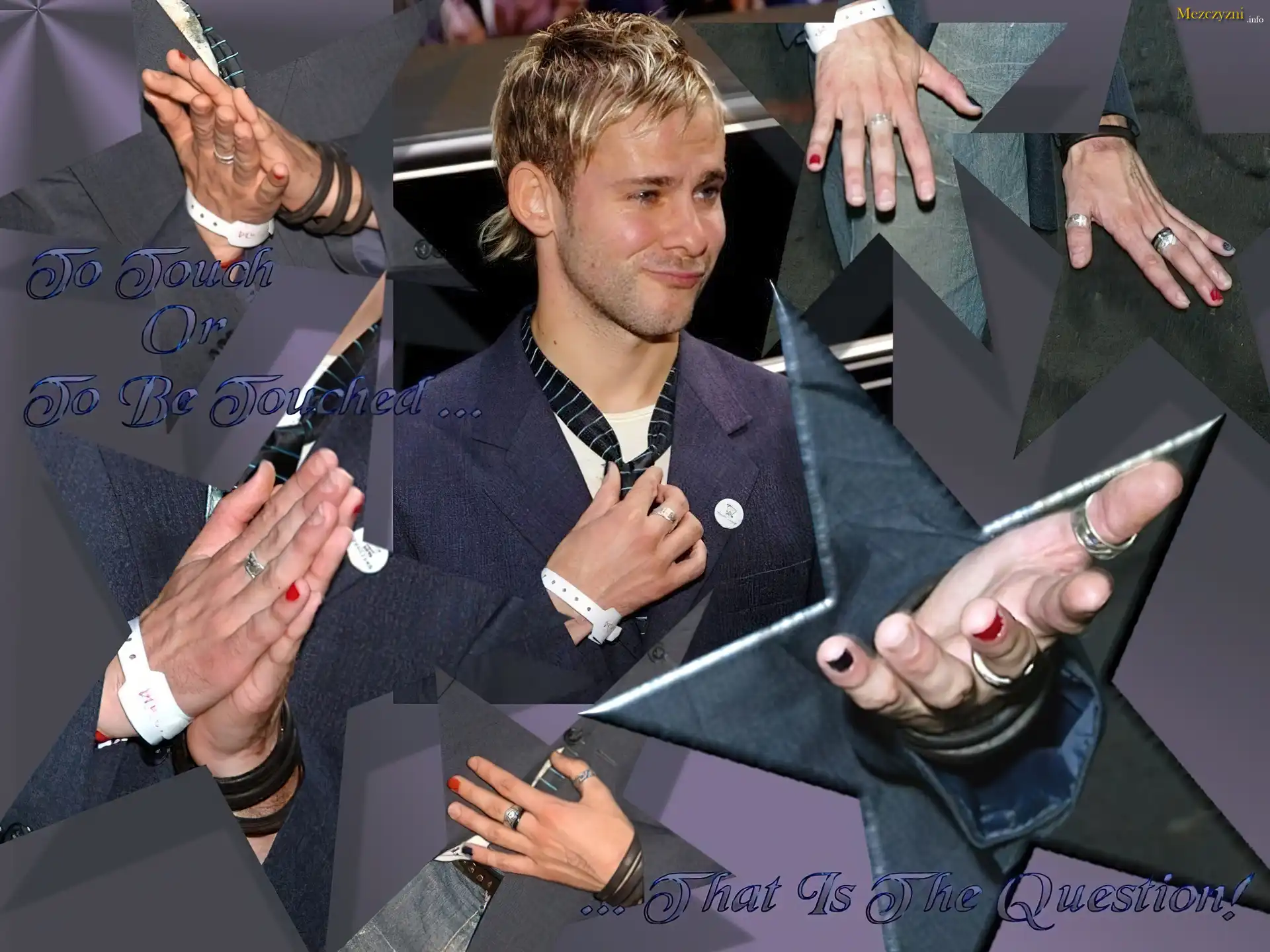 Dominic Monaghan,krawat, kolorowe paznokcie
