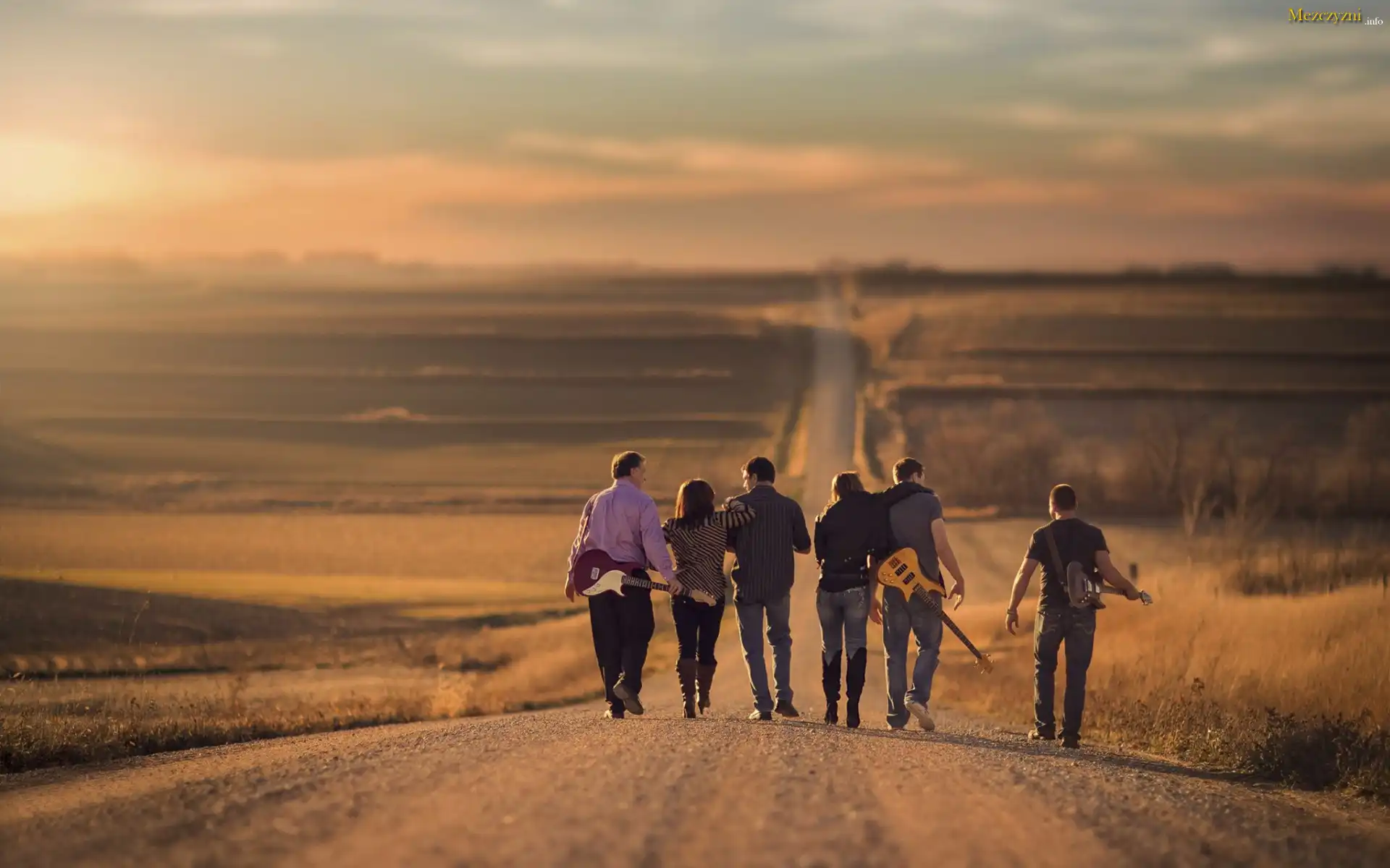 Droga, Mężczyźni, Kobiety, Gitary, Spacer