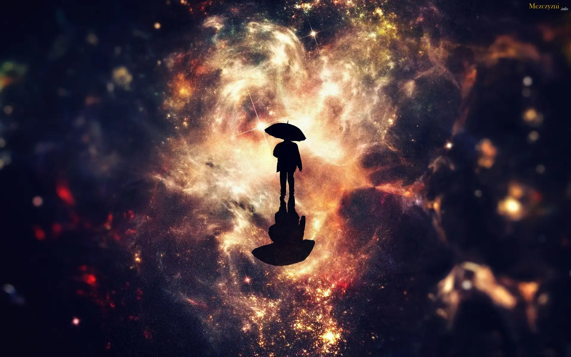 Fantasy, Kosmos, Galaktyki, Mężczyzna, Parasol, Odbicie