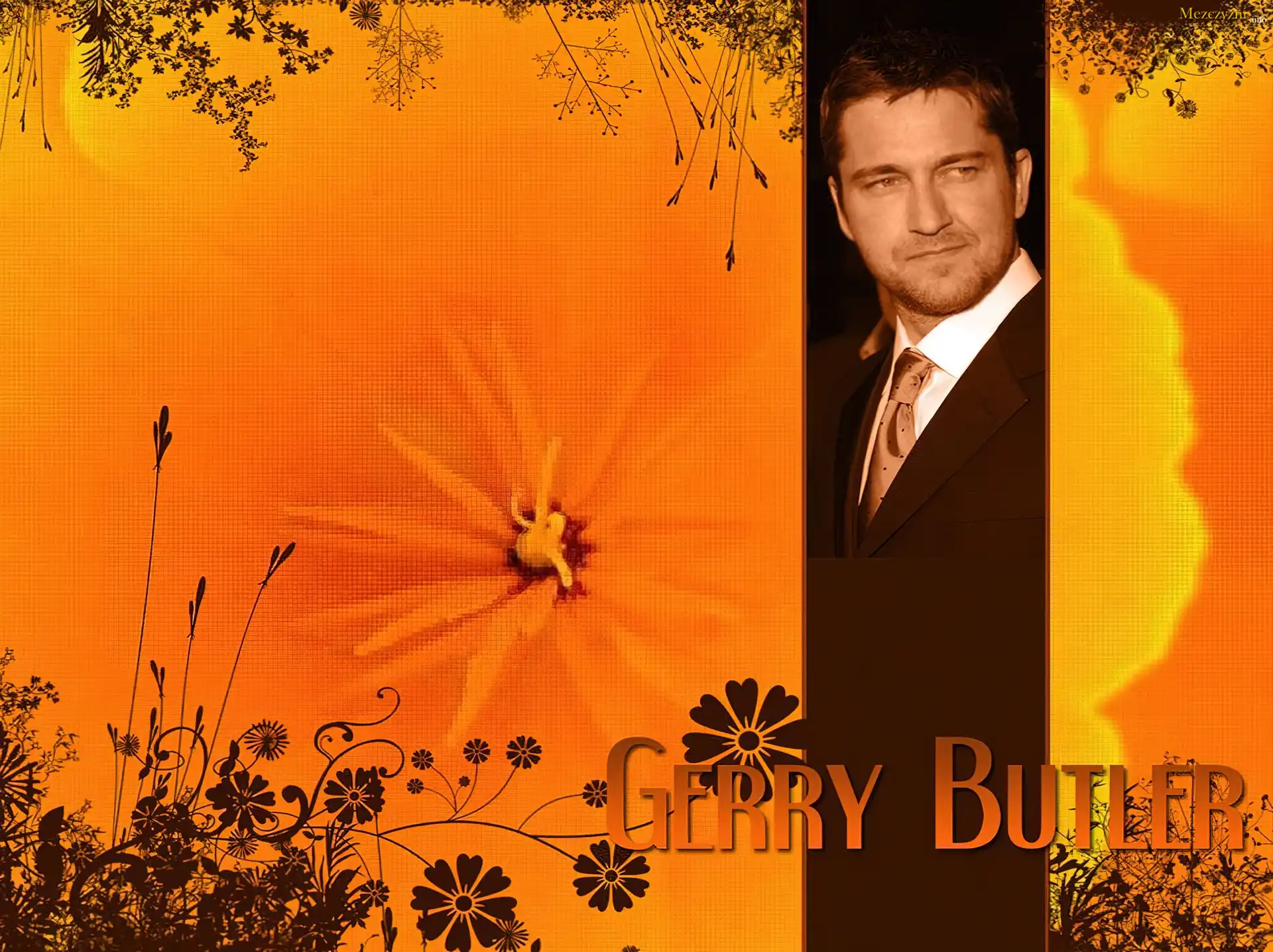 Gerard Butler,kwiatki, garnitur