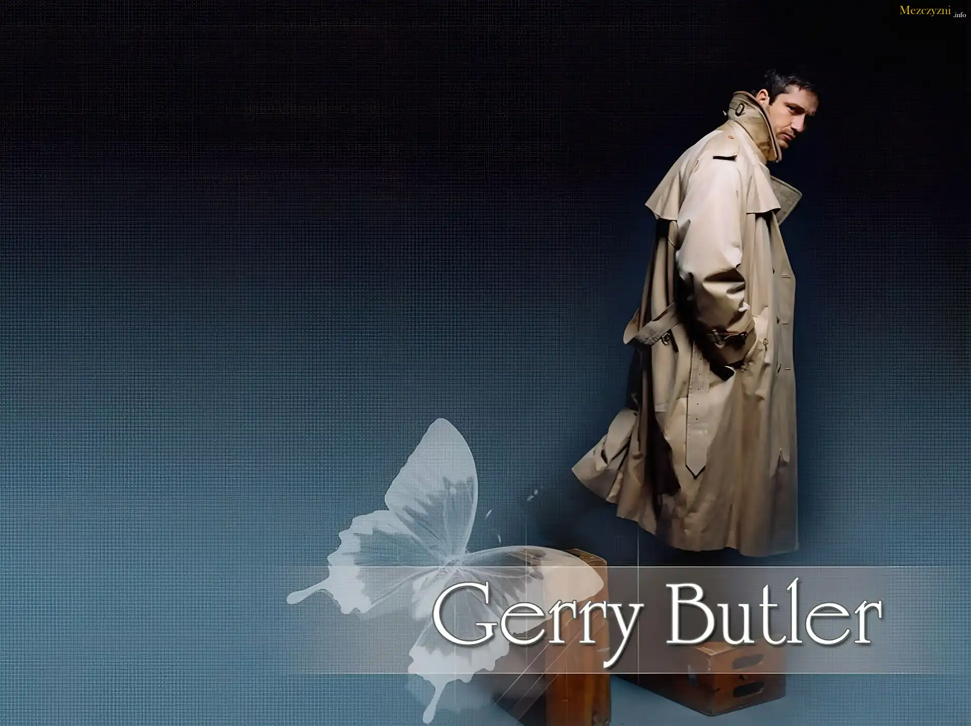 Gerard Butler,beżowy płaszc, motyl