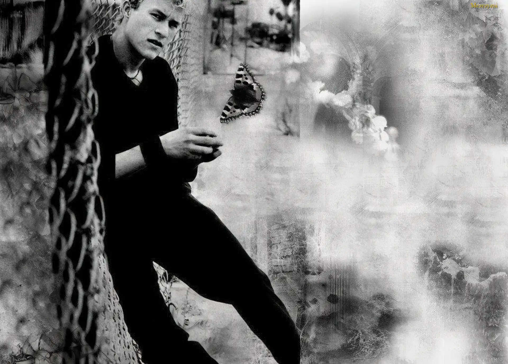 Heath Ledger,czarny strój, motyl