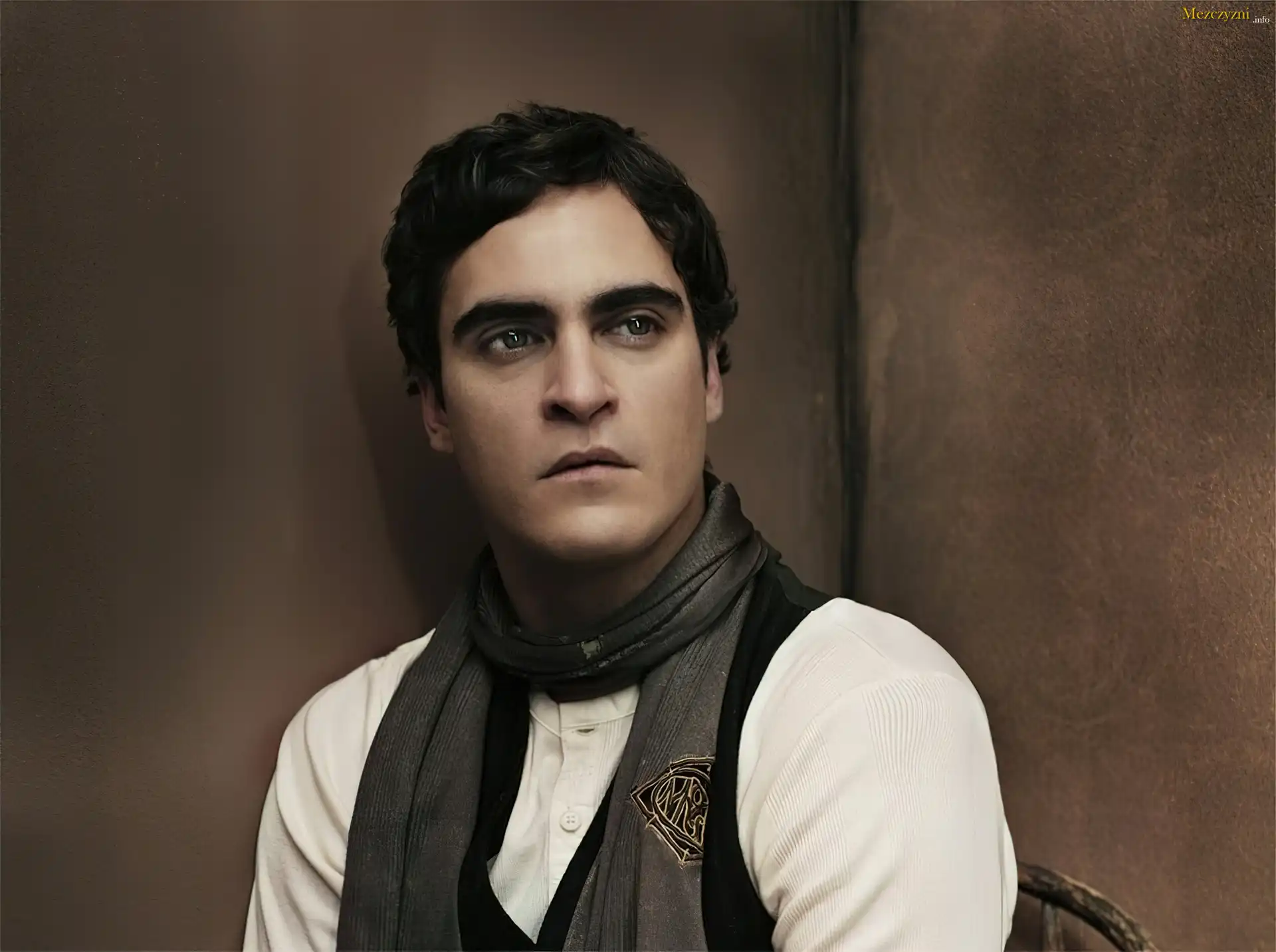 Joaquin Phoenix,ciemne włosy, szalik