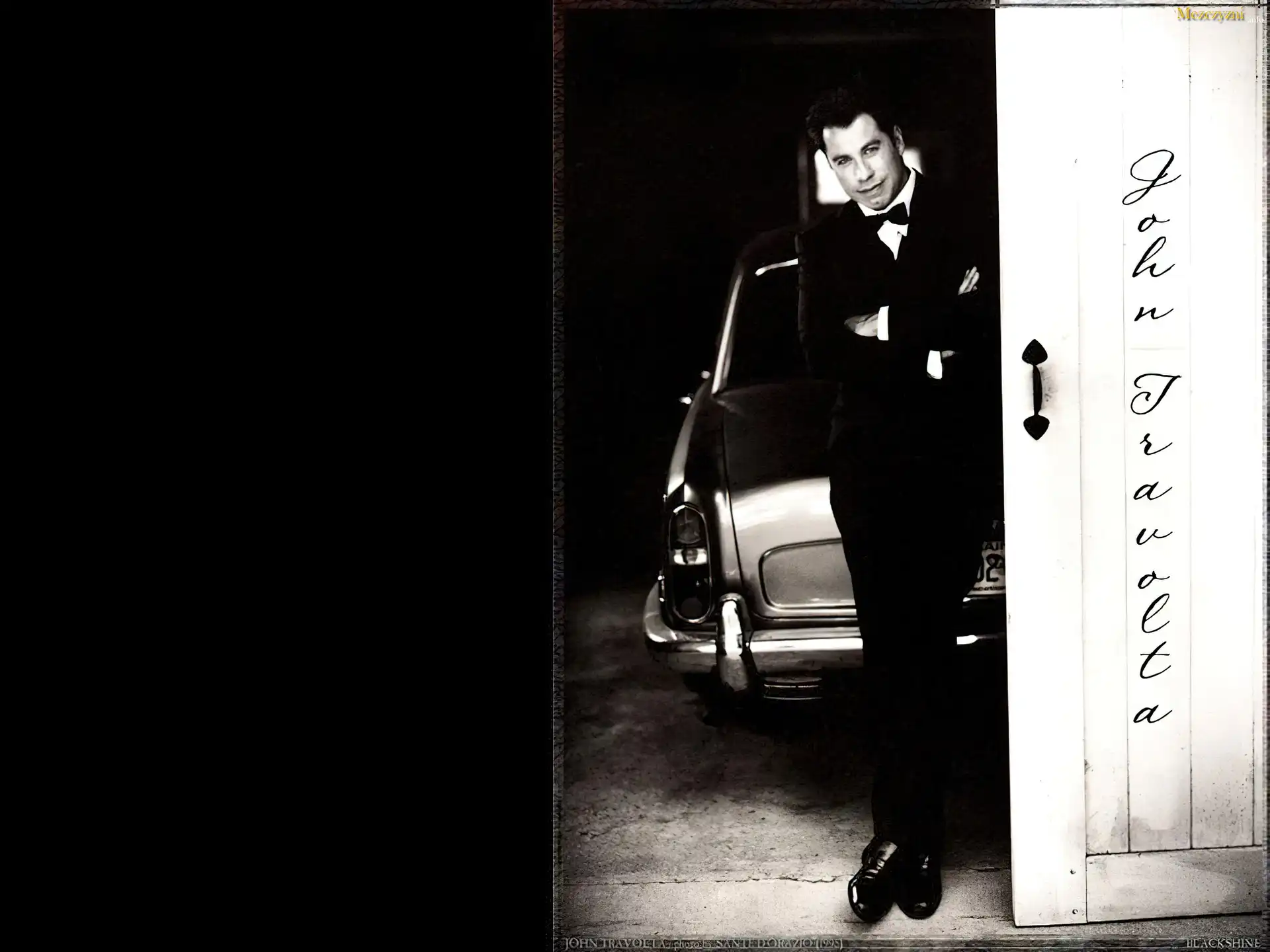 John Travolta,czarny garnitur, samochód