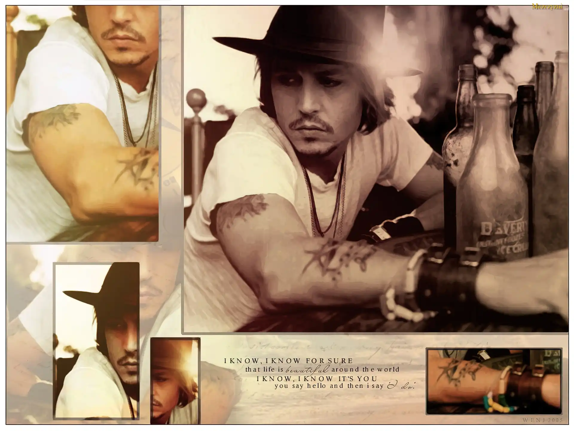 Johnny Depp,butelki, kapelusz