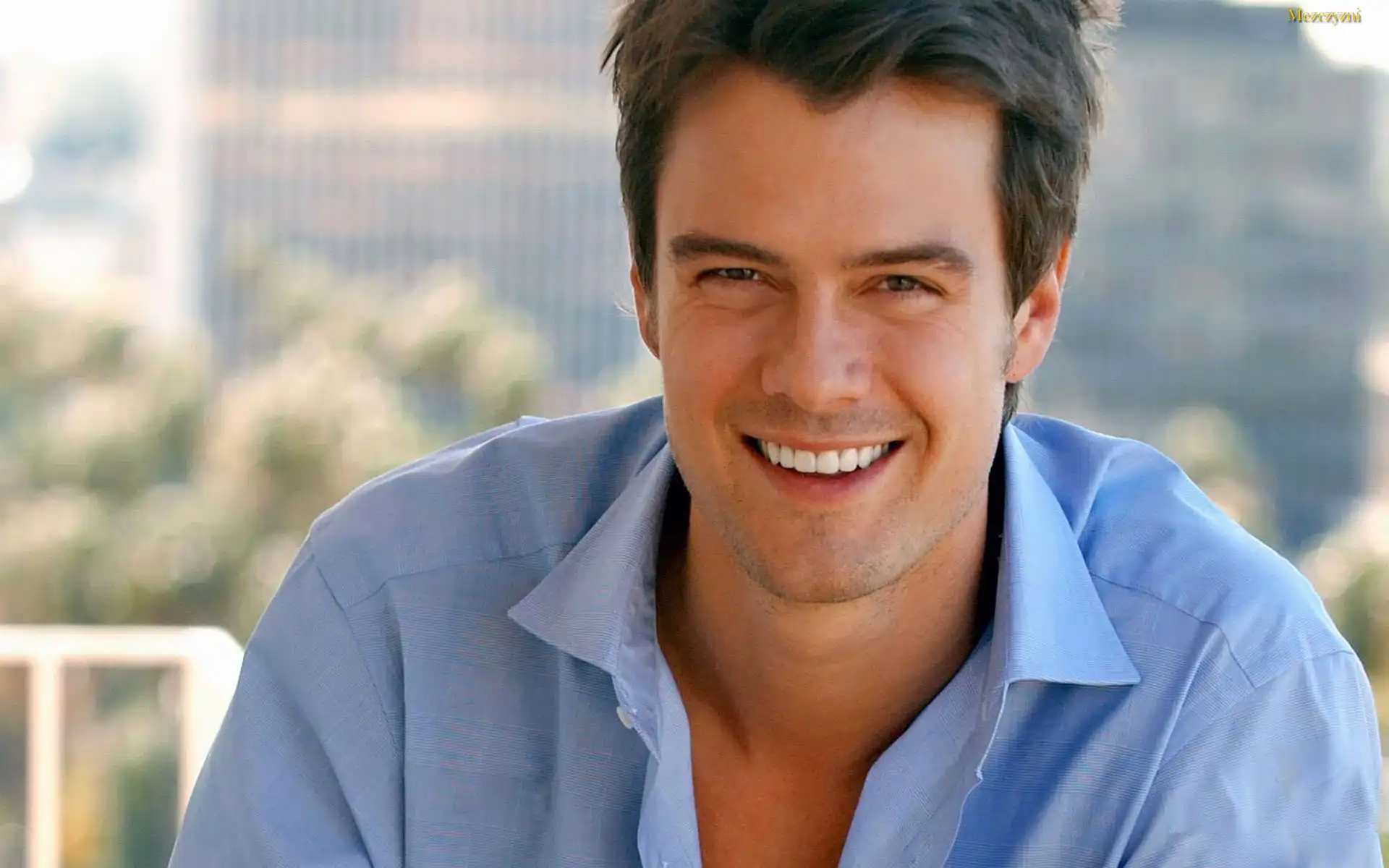 Josh Duhamel, Niebieska, Koszula, Uśmiech