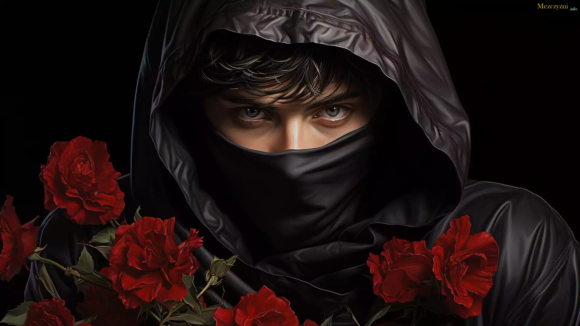 Mężczyzna, Kaptur, Maska, Kwiaty, Grafika