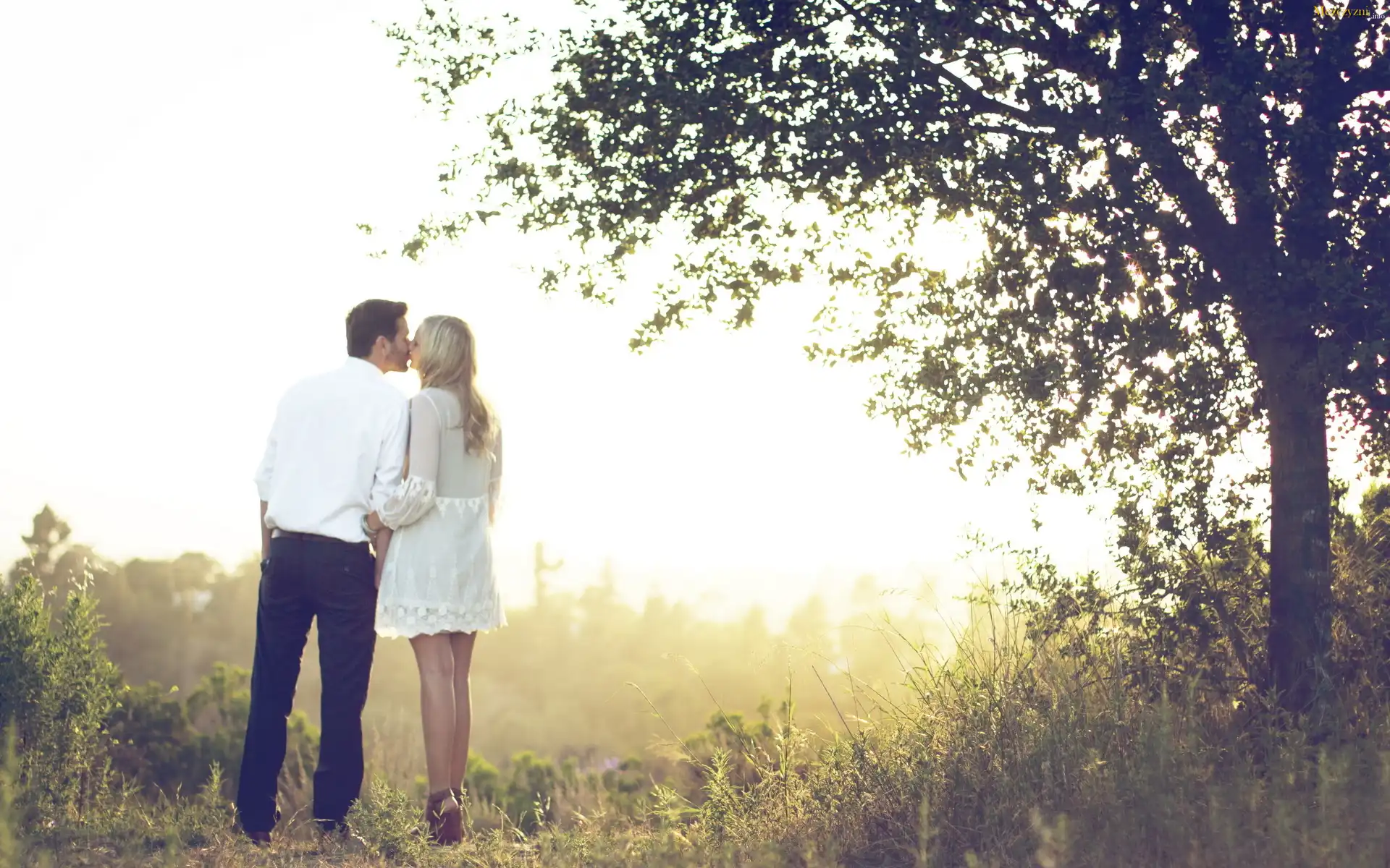 Kobieta, Mężczyzna, Łąka, Drzewo