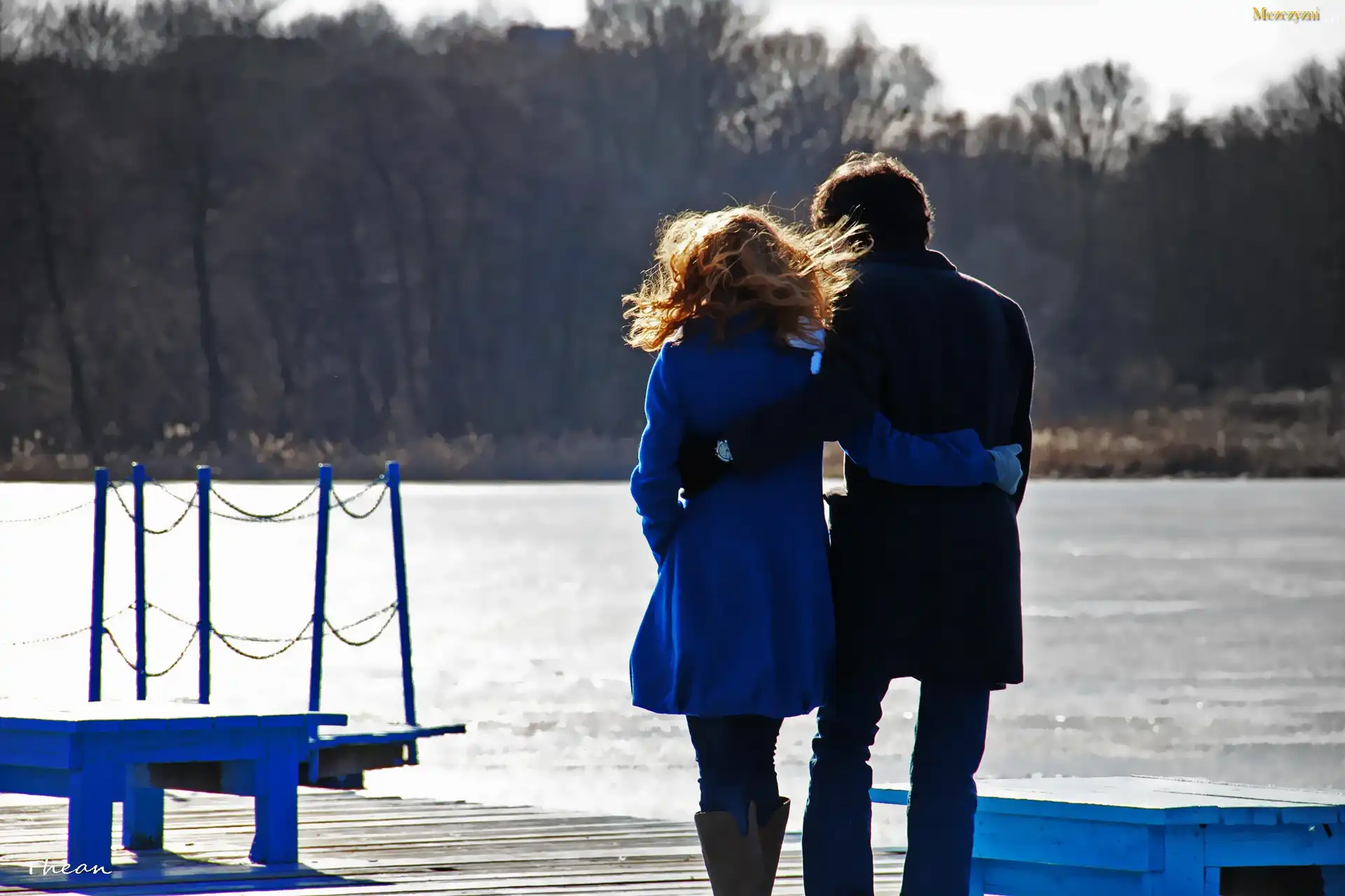 Kobieta, Mężczyzna, Molo, Jezioro