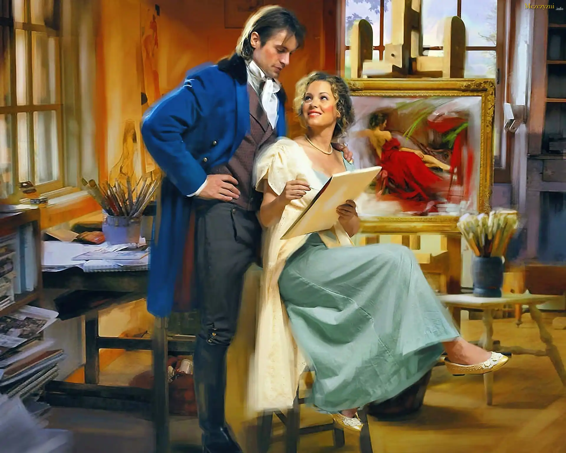 Kobieta, Mężczyzna, Obraz, Sztalugi