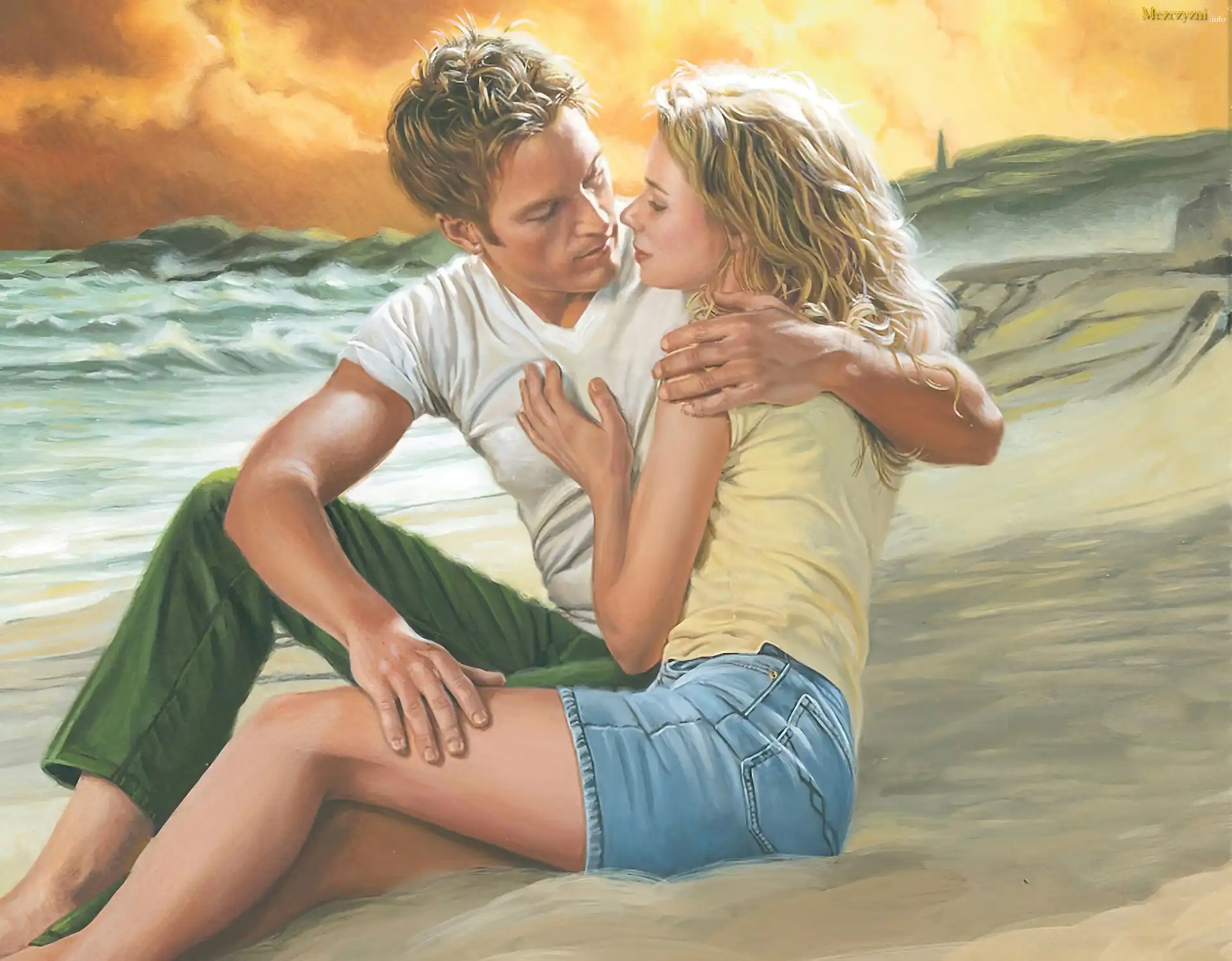 Kobieta, Mężczyzna, Plaża, Morze