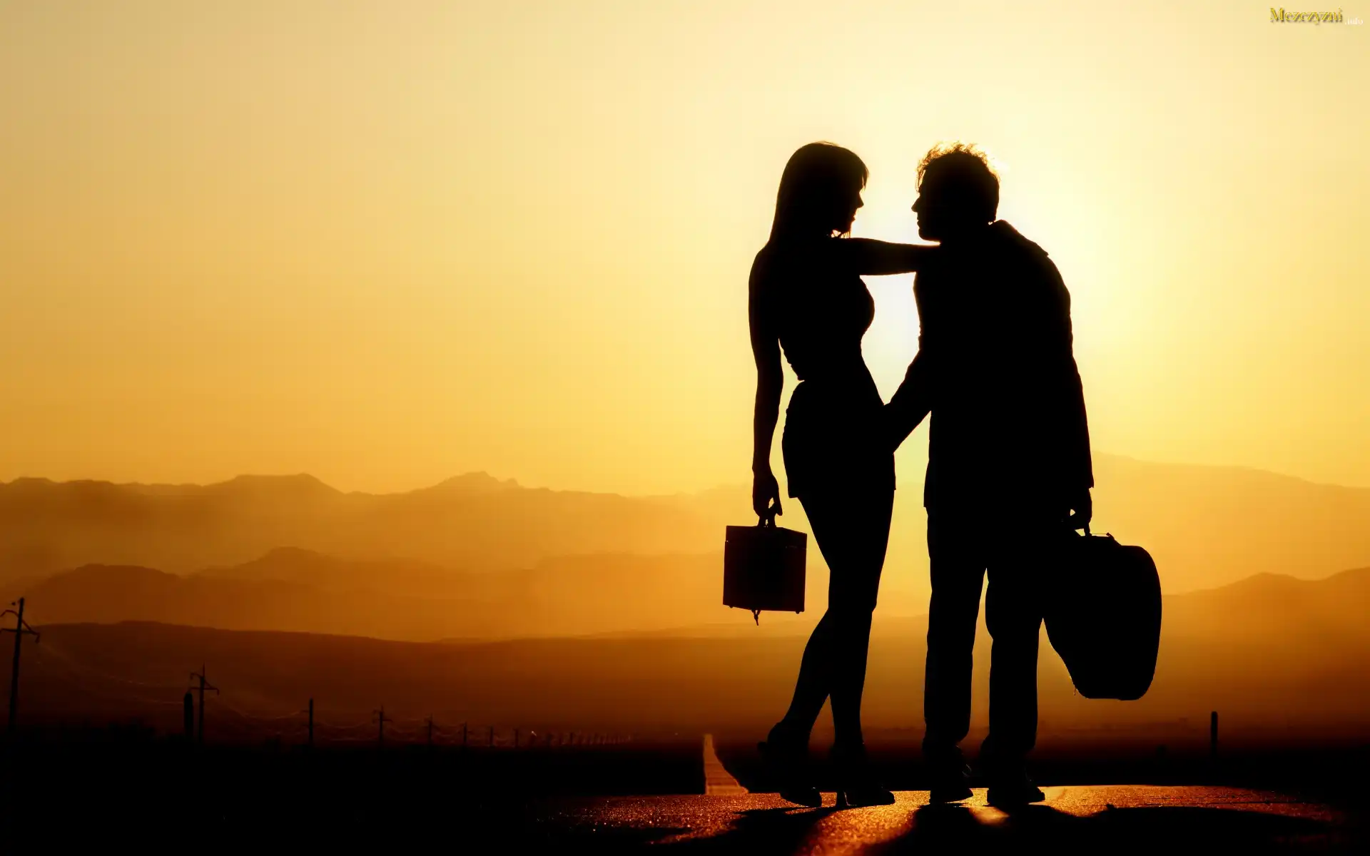 Kobieta, Mężczyzna, Zachód słońca, Droga