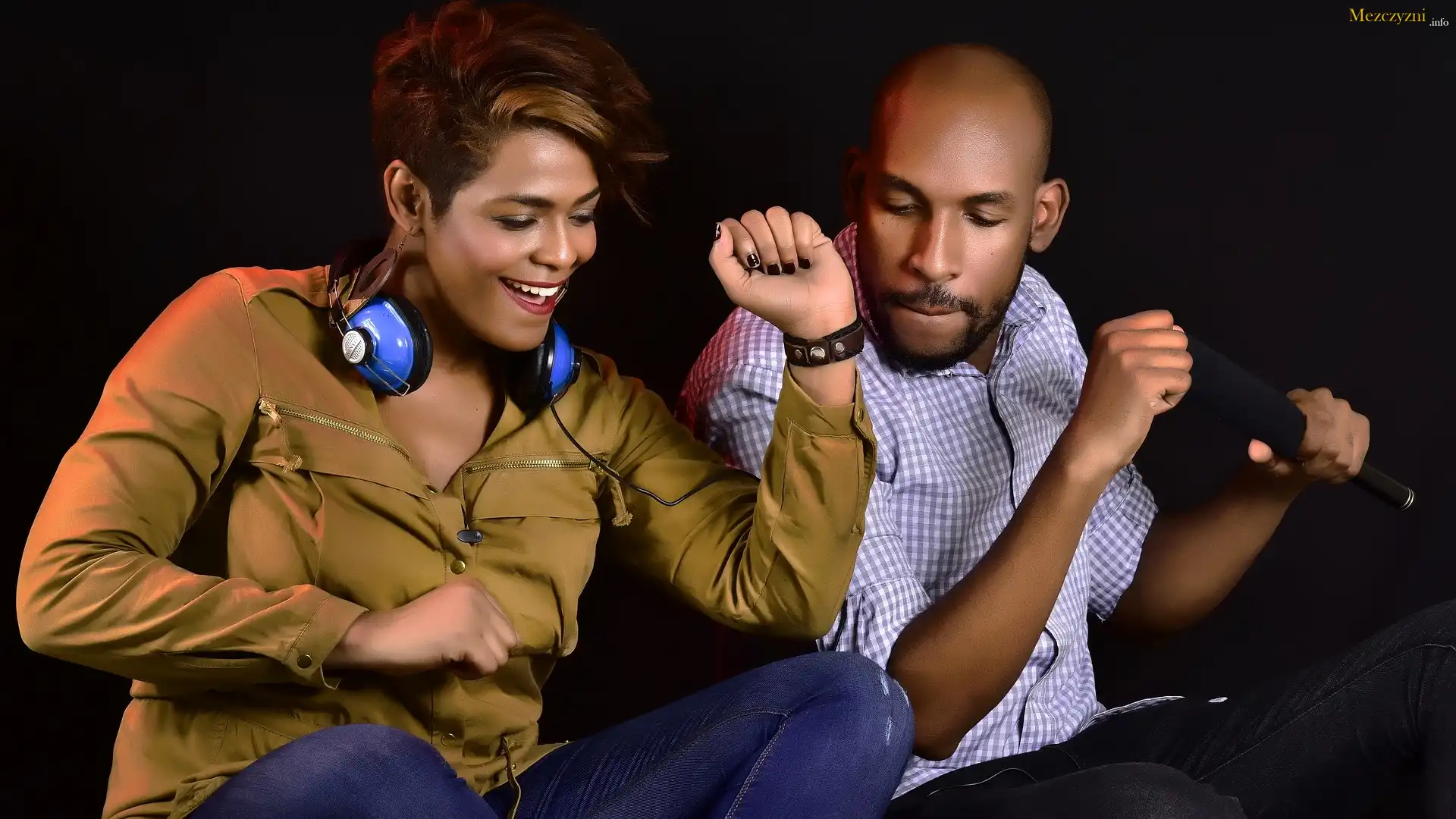 Kobieta, Mężczyzna, Słuchawki, Mikrofon