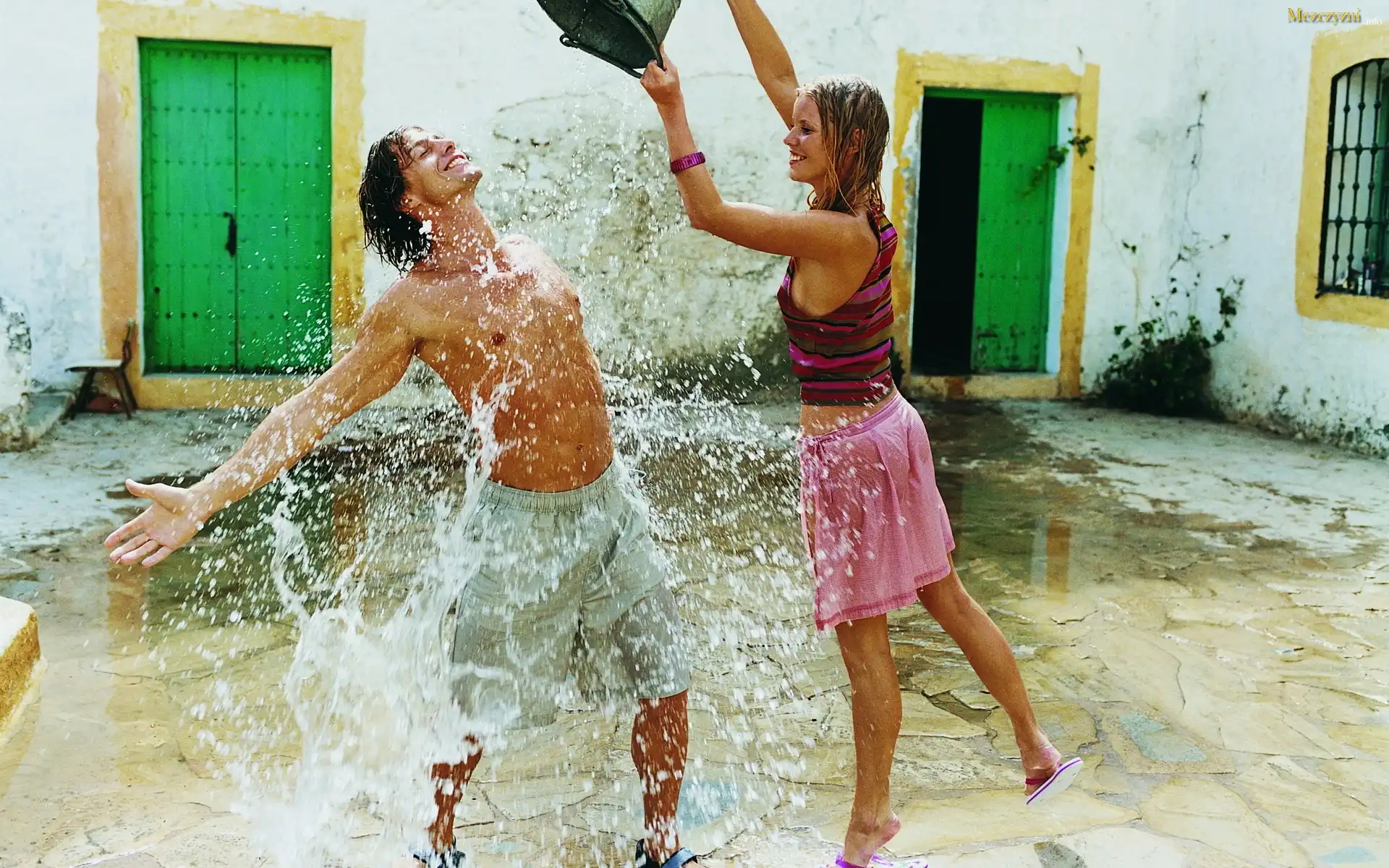 Kobieta, Mężczyzna, Woda, Wiadro, Polewanie