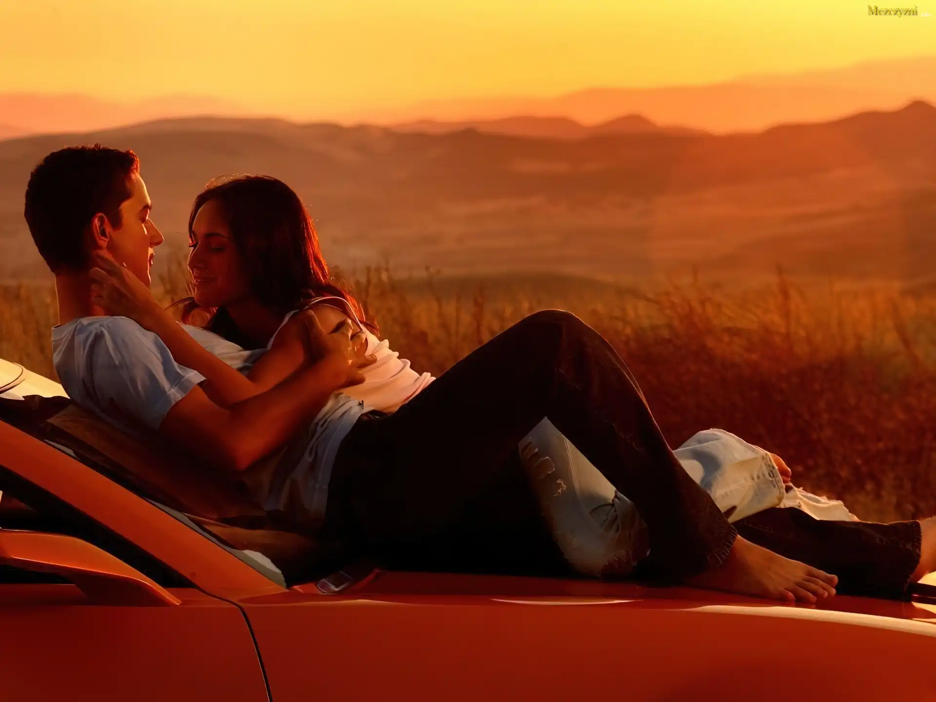 Kobieta, Mężczyzna, Para, Zachód Słońca