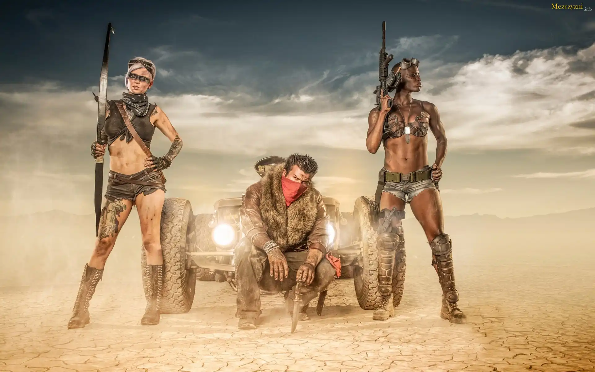 Kobiety, Wojowniczki, Mężczyzna, Samochód, Pustynia