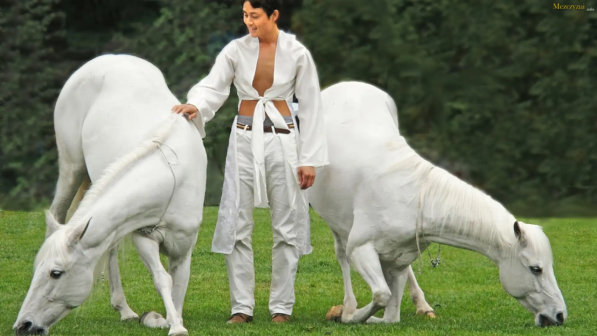Konie, Dwa, Białe, Mężczyzna, Treser