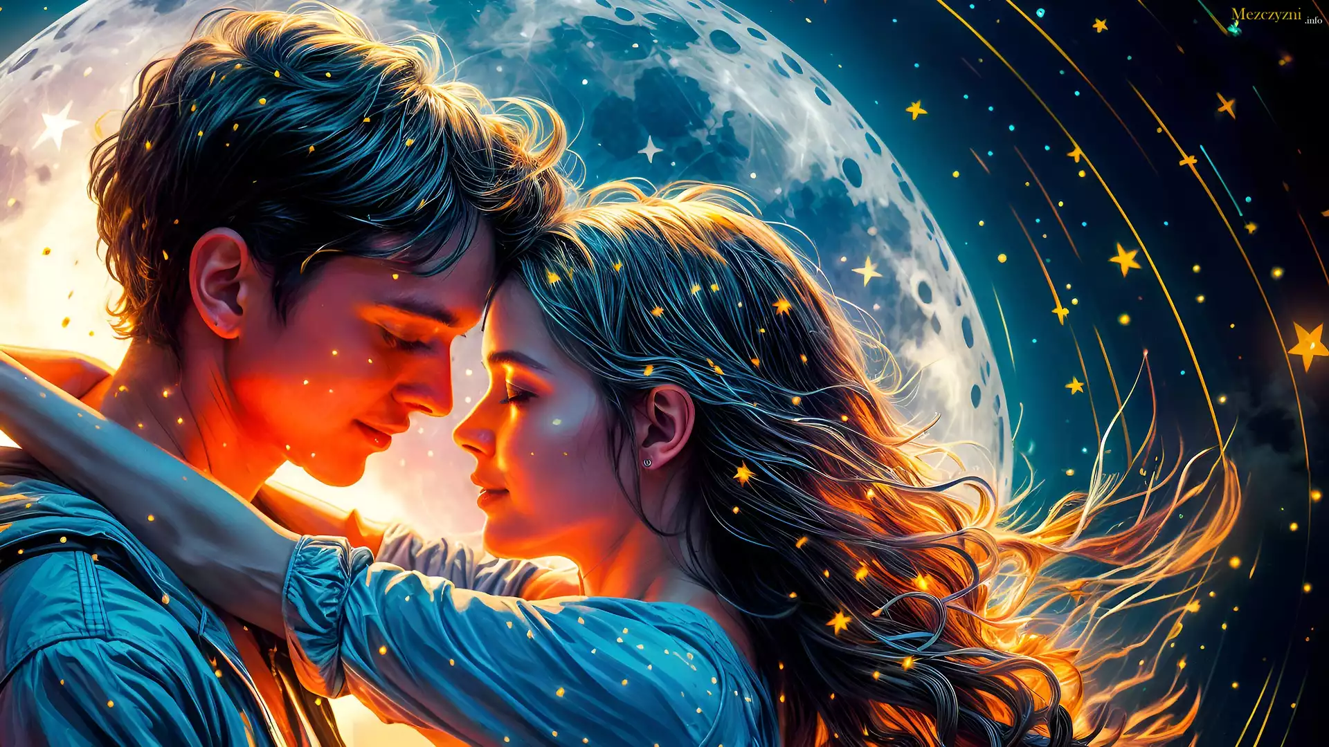Mężczyzna, Kobieta, Zakochani, Księżyc, Grafika, Gwiazdy