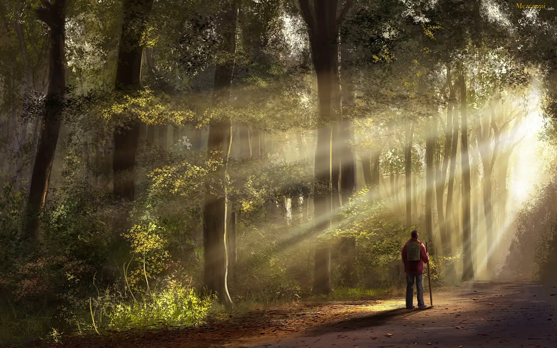 Las, Samotny, Wędrowiec, Promienie, Słońca, Jesień