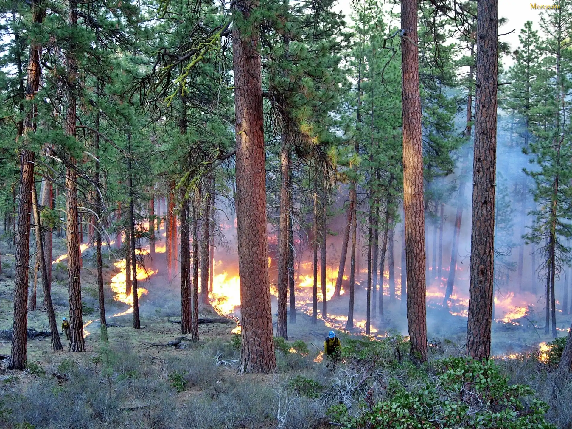 Lato, Las, Pożar, Dym, Strażacy