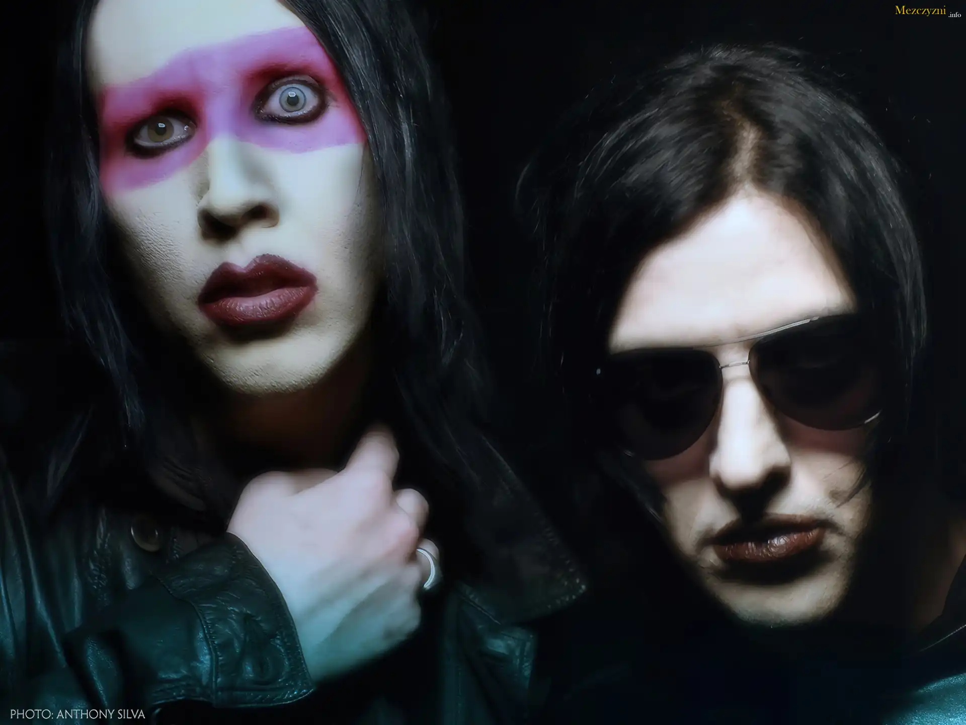 Marilyn Manson, Twarz Marilyn Manson Marilyn Manson, Czerwona, Gwiazda Brian Hugh Warner Marilyn Manson Brian Hugh Warner, Czerwone, Spodnie Marilyn Manson, Sygnet, Makijaż Brian Hugh Warner Marilyn Manson Marilyn Manson, Pazury Marilyn Manson, Czarna, Twarz Mężczyzna, Marilyn Manson. Makijaż, Kanapa Marilyn Manson, Okno Marilyn Manson, Mężczyzna