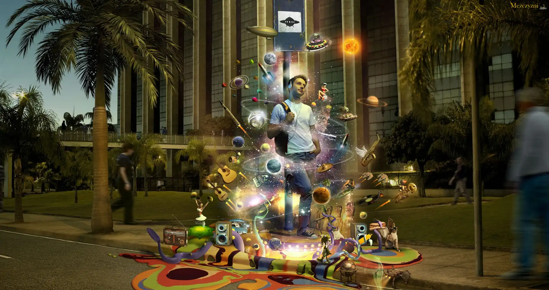 Mężczyzna, Przystanek, Autobusowy, Muzyka
