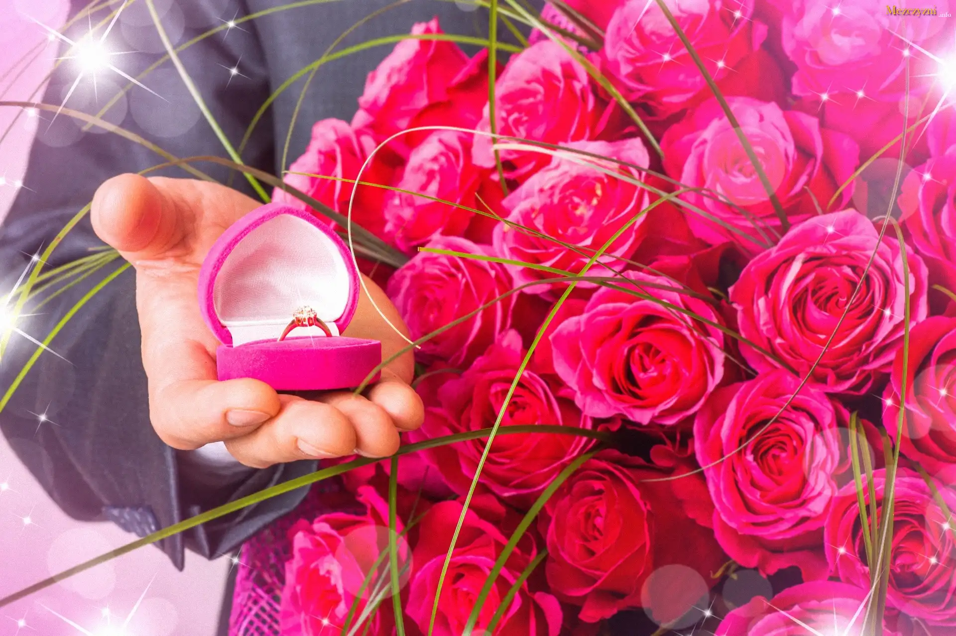 Mężczyzna, Pierścionek, Bukiet, Róż